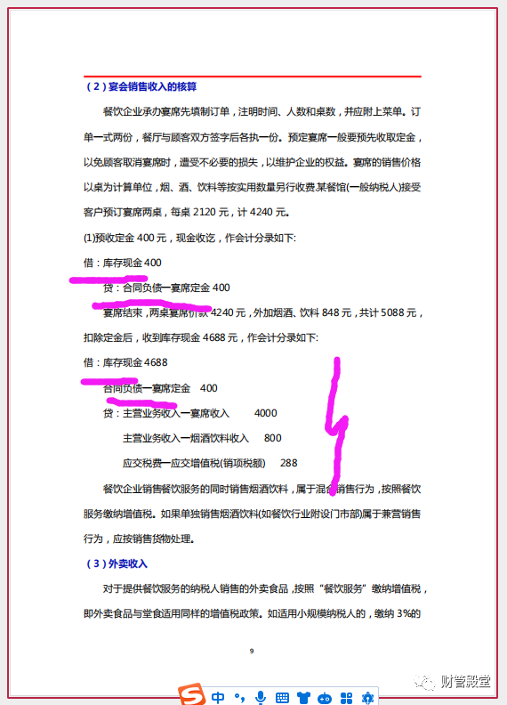 餐饮行业的财务人员其实是最发愁各类成本费用和收入的会计核算了!因为涉及的种类太多了,这对于餐饮会计人员来说确实不太好弄!不过,今天看到江苏女会计编的餐饮行业成本和收入核算的账务处理案例后,才算是恍然大悟了!餐饮行业成本和收入核算账务处理案例分析,真好懂,后附有87笔餐饮行业会计实操案例解析,都是餐饮行业常见的业务账务处理,不熟练的可以参考。