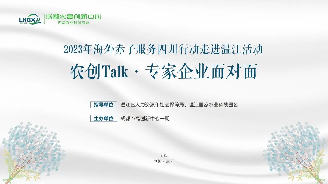 由四川省人力资源和社会保障厅主办,四川省专家服务中心、成都市人力资源和社会保障局、中共成都市温江区委、成都市温江区人民政府承办,中共成都市温江区委人才工作领导小组办公室、温江区人力资源和社会保障局、温江区国家农业科技园区管委会协办的“2023年海外赤子服务四川行动走进温江”活动于9月19日正式启幕。