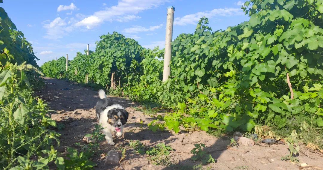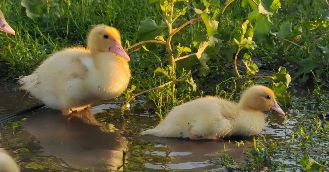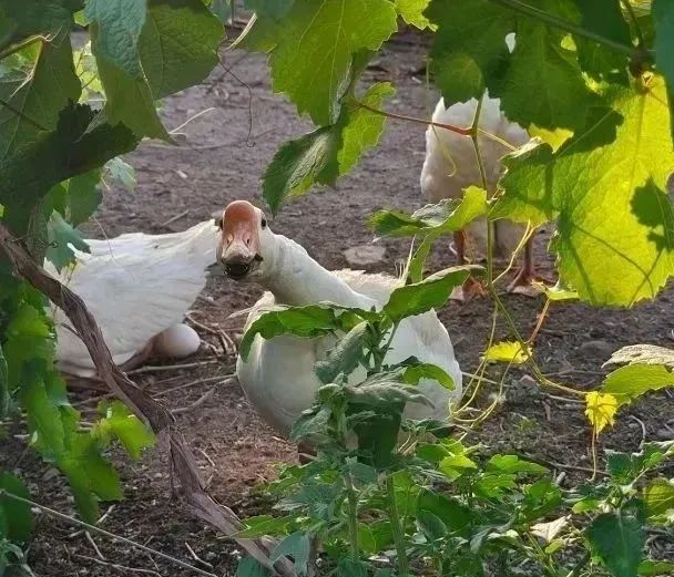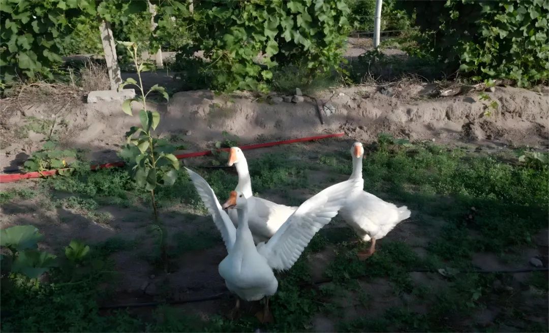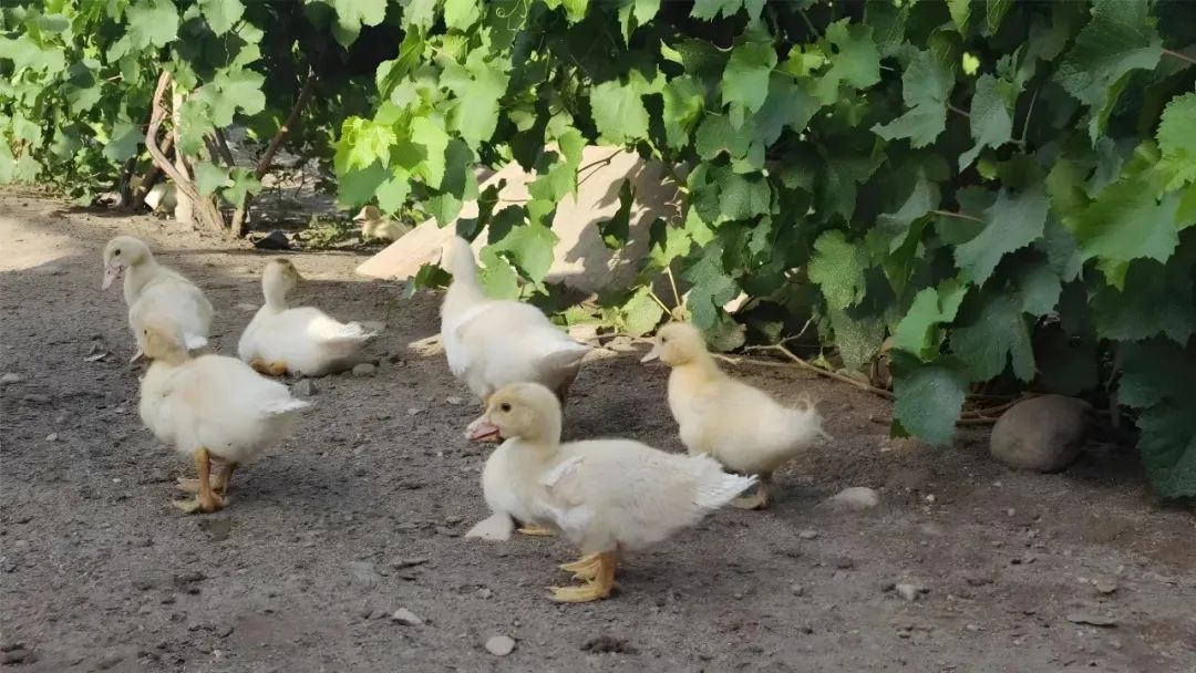 一群可爱的小欧洲雁在葡萄园里自由穿梭
