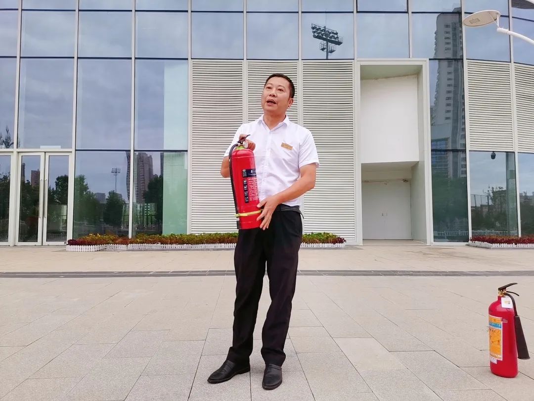 场馆资产管理部张勇先生为大家详细讲解干粉灭火器和二氧化碳灭火器的区别和使用方法。