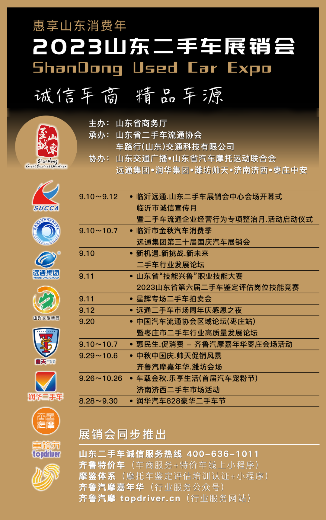 本次活动是全面落实山东省“消费提振年”行动部署要求,围绕二手汽车消费开展接地气、聚人气、增活力的消费活动,营造物美价廉、种类全、体验好的消费场景,聚力打造惠享山东消费年•2023山东二手车展销会特色品牌。借势即将到来的中秋、国庆,集聚各方车源,为广大市民提供丰富、实惠、优质的汽车消费盛宴,为促进消费升级扩容、加快经济恢复和高质量发展提供强大动力。
