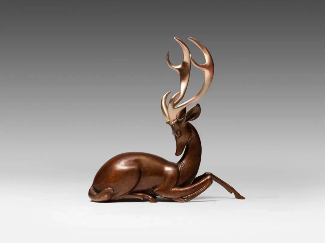 《林空鹿饮》66x16x47cm 青铜着色 2019