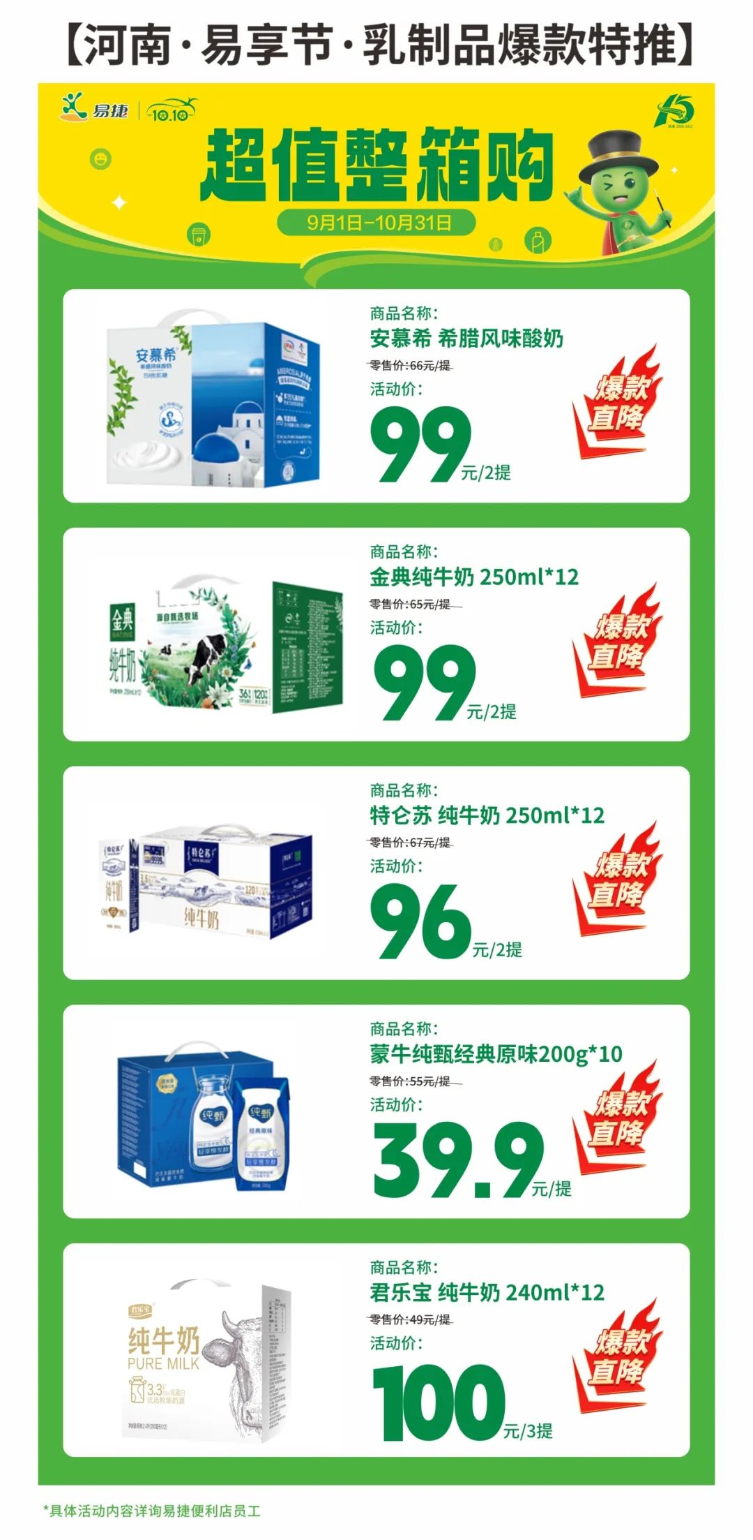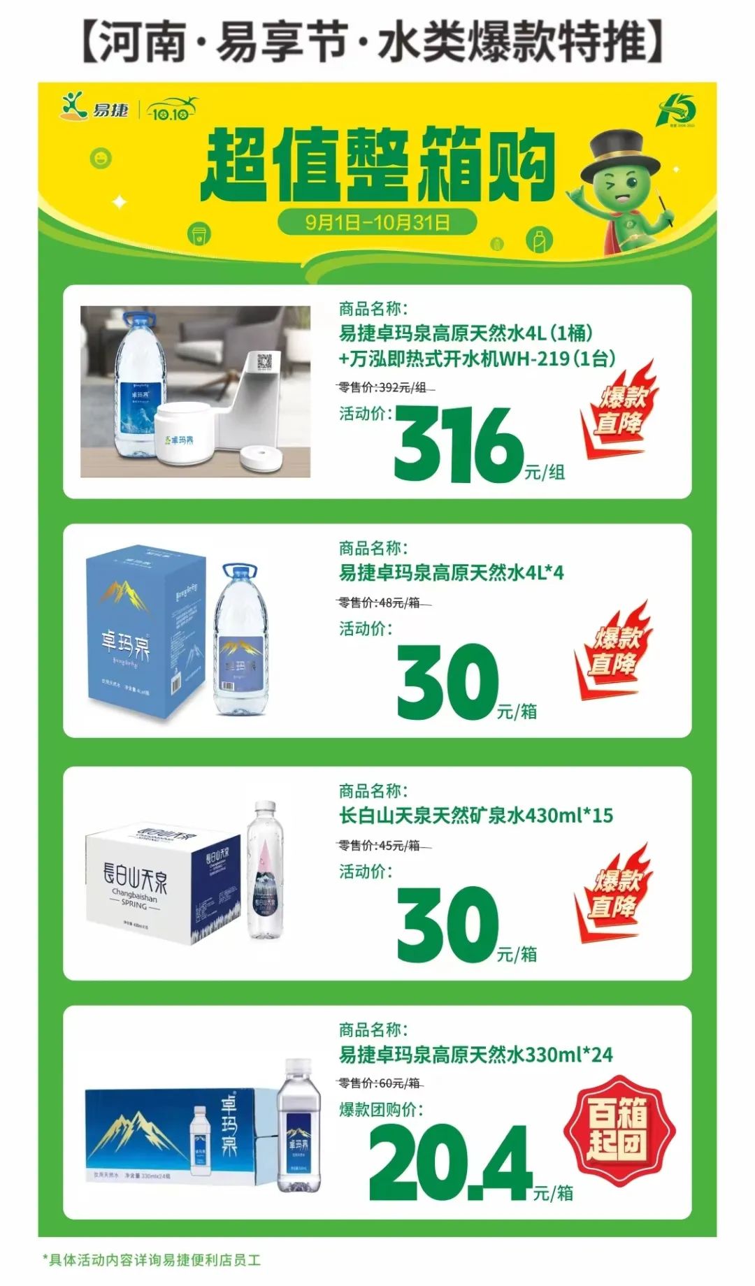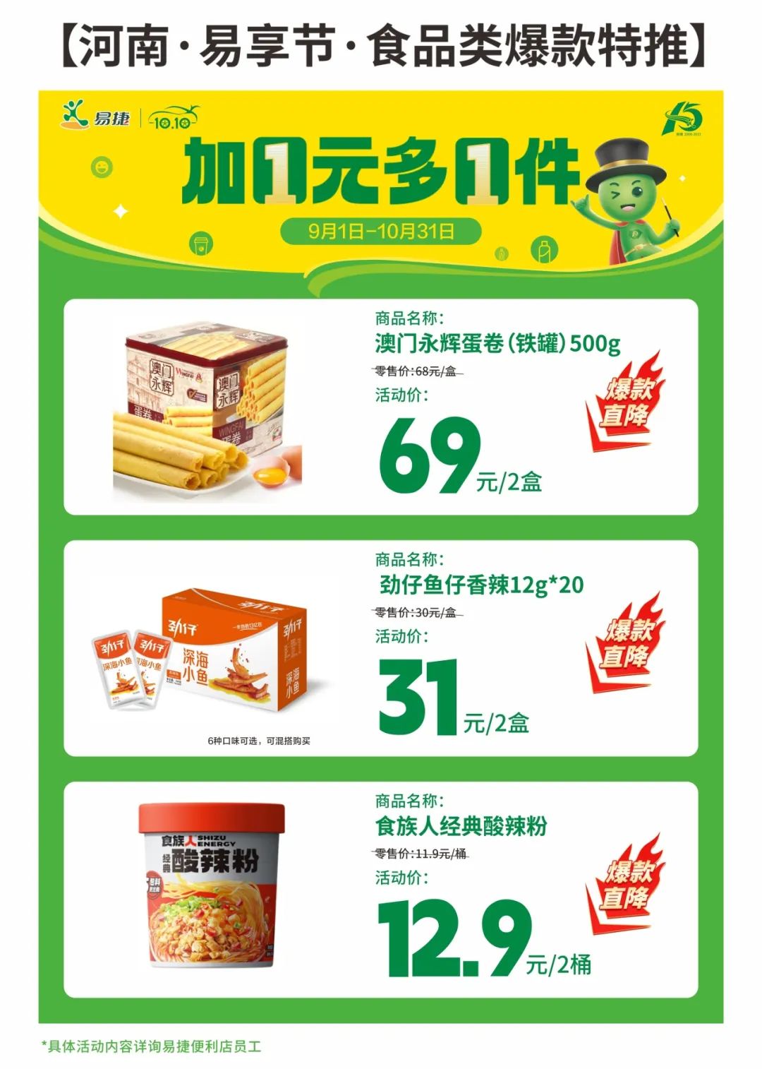 活动期间,世纪景苑广场还将同步进行“易享节”商品的现场展销,伊利、银鹭、统一、盼盼等三十余个市场畅销及行业头部品牌,赖茅、卓玛泉、长白山天泉等易捷自有品牌为活动加码,展销涉及酒、水饮、食品、粮油、百货、生鲜等6大品类,超200种商品,为油田职工家属提供超值购物惊喜。 精彩福利等你来!!!