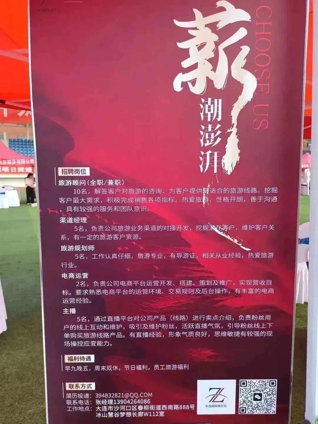 上午八时许,我社宣传牌、海报早已林立,在微风中等待学子的光顾。招聘会于九点在东北财经大学体育场准时开始。