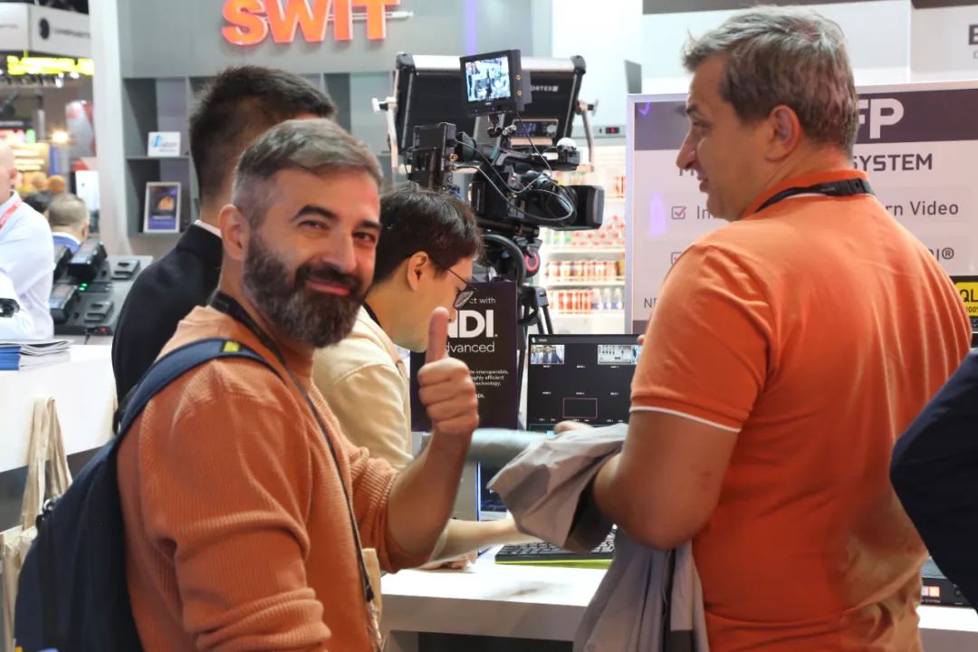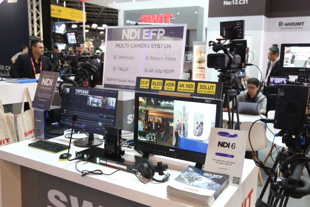 围绕NDI生态,SWIT首次在IBC展示了NDI EFP系统,包括NDI编解码适配器、NDI通话控制单元。可将摄像机SDI编码为高码流高画质NDI,接入NDI网络进行现场节目制作,支持导播与摄像师之间的全双工内部通话、NDI返送视频监看、前后双TALLY显示等,支持4K60p NDI,为NDI制播生态系统提供了强有力的配套。