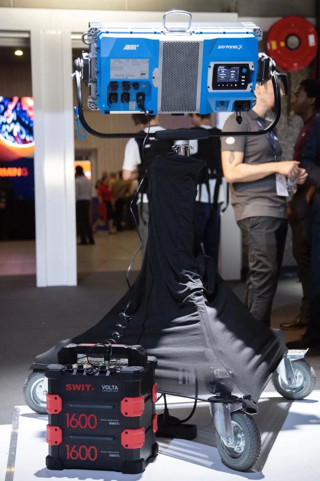 VOLTA floor battery再次引人瞩目,已完美支持ARRI最新的Skypanel X的全功率输出。模块化可扩展电池包的设计,可以支持大功率影视灯光长时间供电。ARRI的灯光产品线负责人Benjamin Diaz对SWIT为Skypanel X提供的强力电源解决方案表示高度满意。