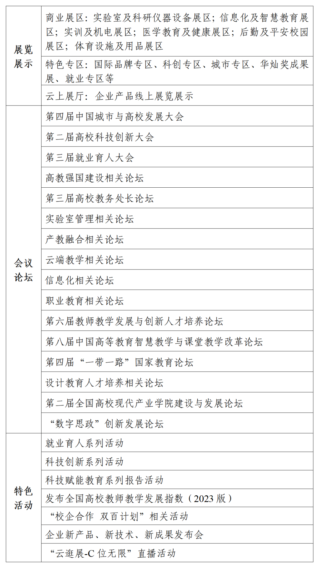 部分展览展示、会议论坛、特色活动等(具体以实际为准):