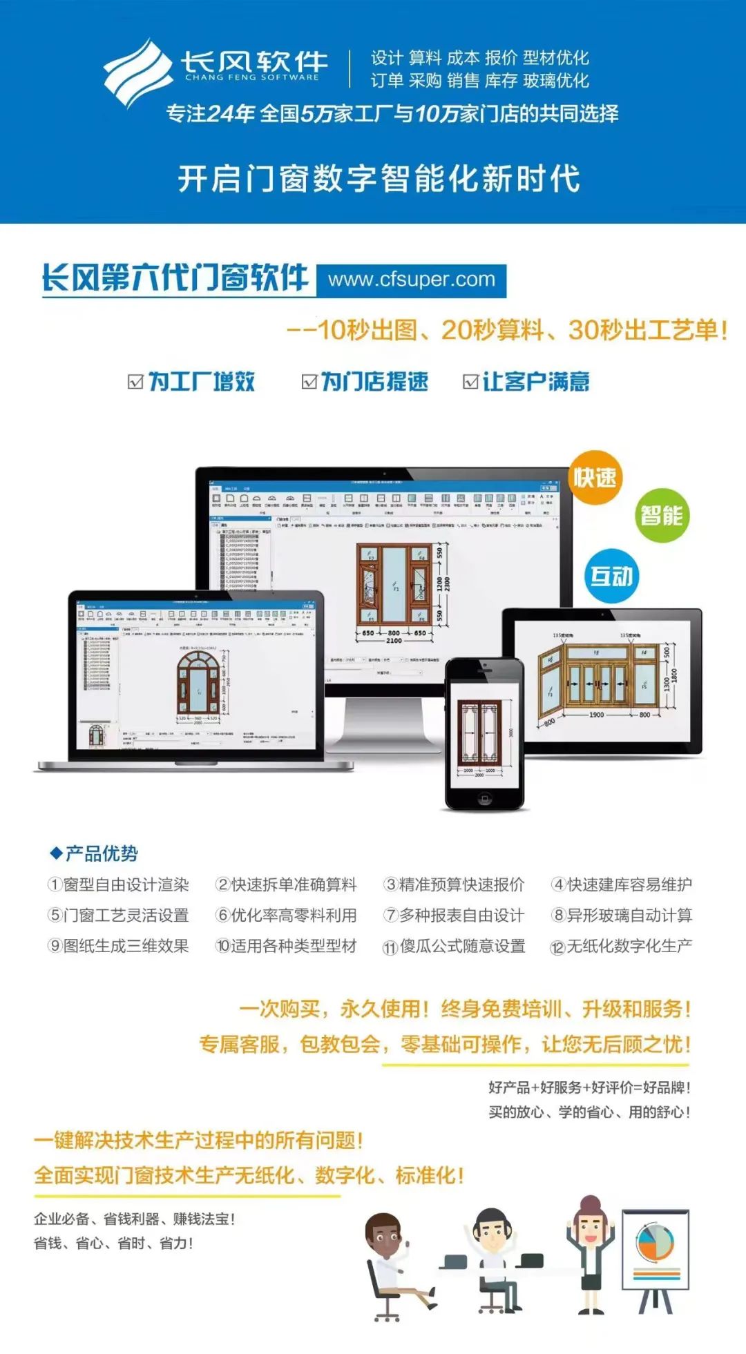 《长风门窗软件和ERP管理系统》软件功能覆盖了门窗加工企业所有部门和岗位,帮助门窗企业快速、准确的完成工程项目门窗设计、预算报价等前期操作,彻底解决门窗企业由设计报价、排产下单及成品出库整个业务流程的物料管控, 按工程项目运作周期将项目管理、设计计算、物料需求、物料仓储、物流发货、生产排产、仓库存储、财务结算充分合理的连接起来,减少重复劳动、提高工作效率,减少工作失误、健康业务流程,控制管理成本、提高生产效率,提升生存能力、焕发企业新动力,是提高企业管理水平及工作效率的最佳选择,是门窗企业优选的最合适的内部管控信息平台。