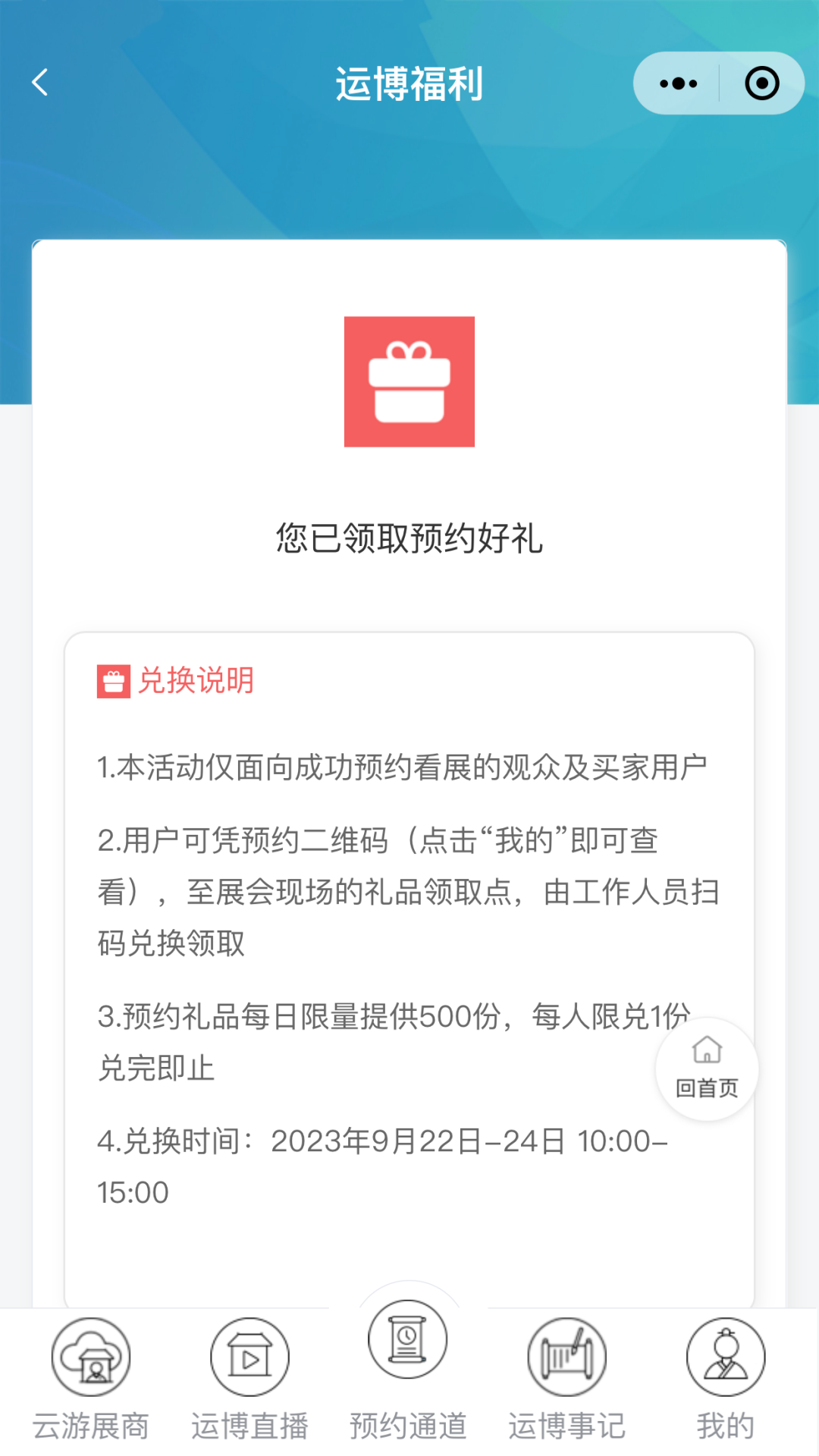 1、本届运博会给预约观众提供了“预约礼”,展会期间,观众可凭借预约二维码至展会现场领取(数量有限,兑完为止)。