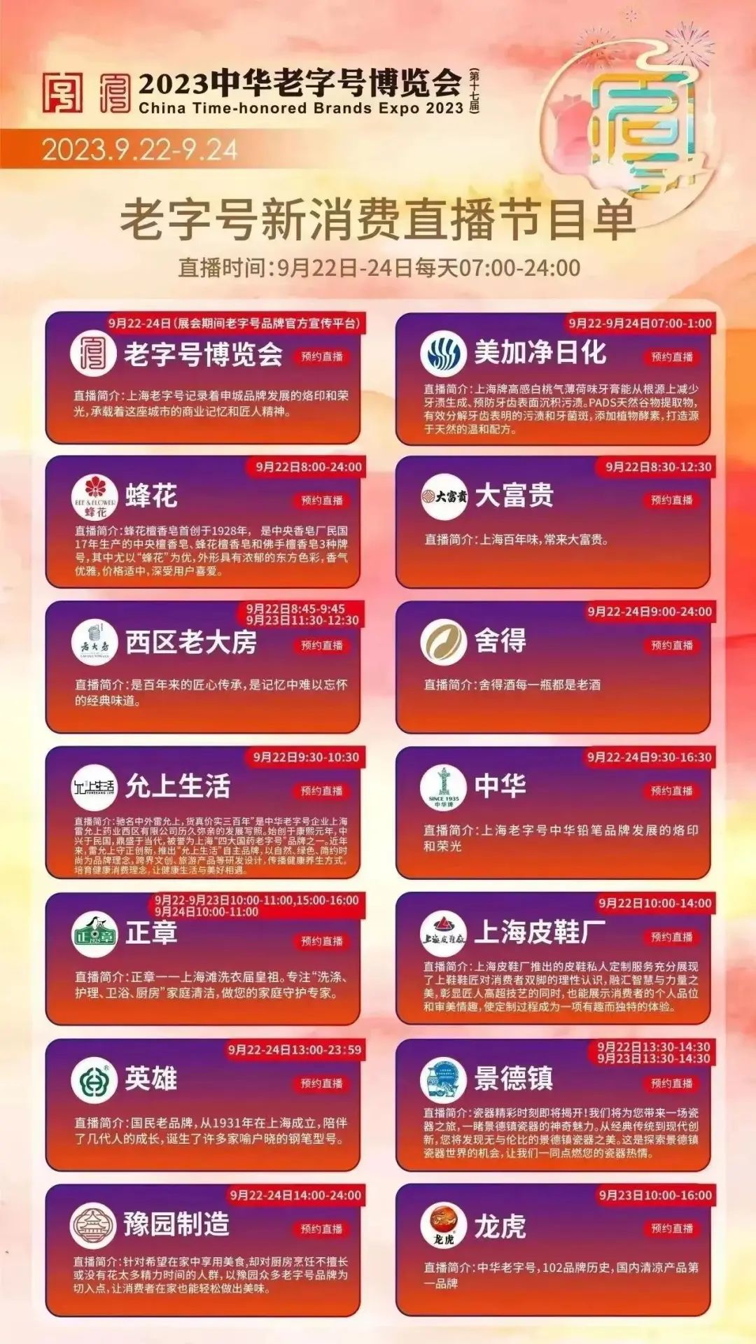 今年2月份,商务部会同文化和旅游部、市场监督局、国家文物局、国家知识产权局联合印发了《中华老字号示范创建管理办法》,推动老字号创新发展,促进品牌消费。本届老字号博览会在筹备上也打破传统,积极跨界,让老字号品牌与现代元素碰撞出新的火花,展现出历久弥新的生机活力。中华老字号博览会为期三天,从9月22日开始,到9月24日结束。