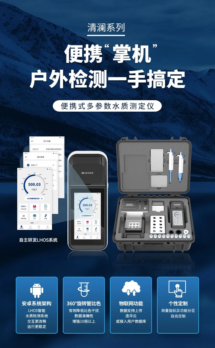 在本次展会上,连华科技重点展出了新羽系列、清澜系列、清淼系列旗舰型水质检测仪器,其中LH-C600、LH-P700、LH-T600型号备受关注。这3款仪器,均是采用基于安卓系统打造的LHOS智能水质检测系统,具备操作流畅度高、拓展功能丰富、界面交互简洁等诸多优势,支持个性化定制水质检测指标及功能分区,满足不同行业不同客户群体的差异化需求。除此之外,具备专利技术的360°旋转管比色、多点曲线校正、物联网功能、智能数据分析等技术应用,也是新羽系列、清澜系列、清淼系列多参数水质测定仪令人瞩目的闪光点。