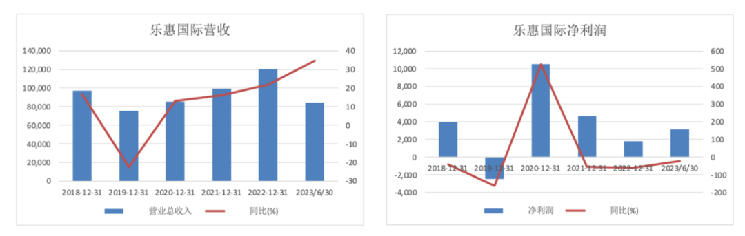 图:乐惠国际营收及净利润;来源:Wind,36氪制图