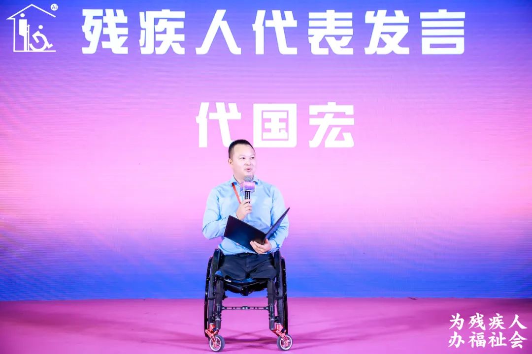 全国残疾人游泳锦标赛百米蛙泳冠军—代国宏,作为残疾人代表发言,他告诉我们,健全人以为的需求和残疾人朋友真正的需求往往存在着巨大的差异。如何缩小差异?这应该是举办本次博览会的意义和价值所在。今天他在活动现场特别开心地看到了从未见到的那么多、那么好、那么先进的辅助器具,那么友好的无障碍设施设备,那么温馨的婚恋活动、嘉年华活动,这就像为残疾人办的一个节日。残疾人朋友们可以去学习每一个我们能学的知识、去对待每一份对我的帮助和关心、去欣赏每一个并不完美的人。福祉博览会暨残友嘉年华,让残疾人可以走在宽阔无障碍的会场,自信地发现和追求更加美好幸福的生活。