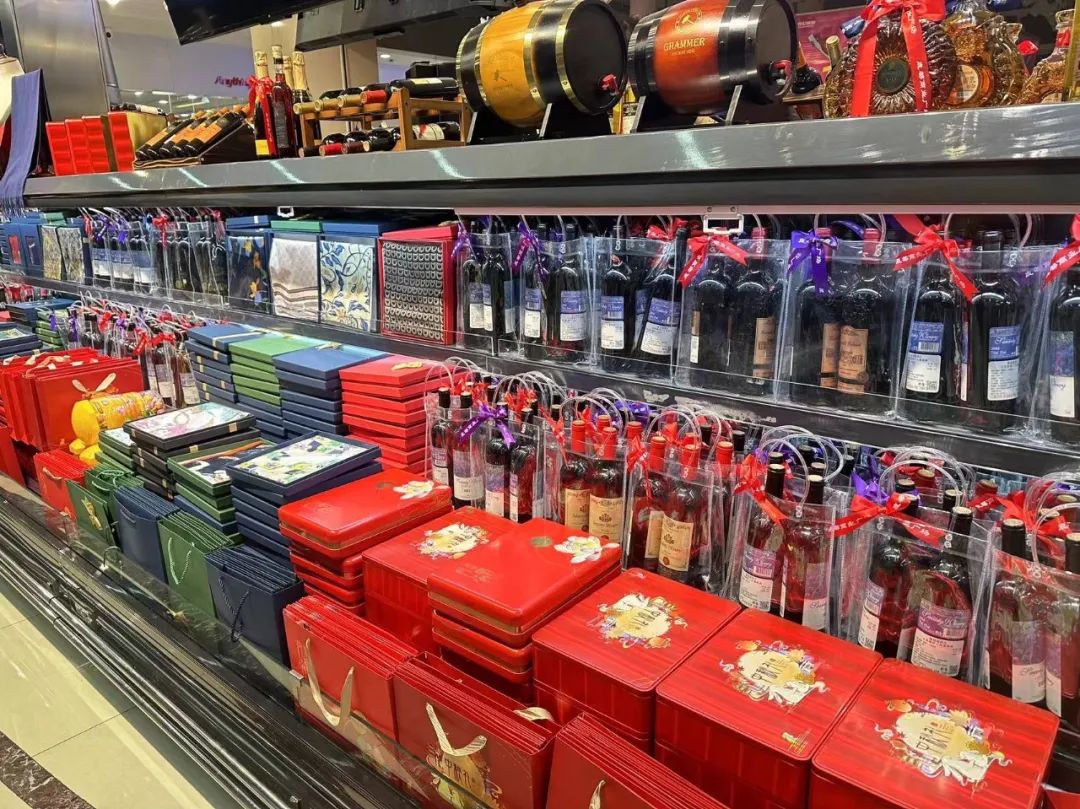 消费满599元的顾客,可免费领取进口红酒两瓶或高档月饼礼盒一份
