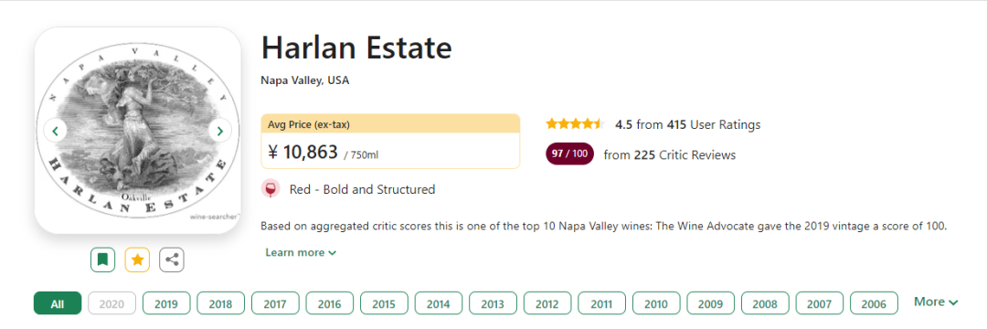 而1992年份的哈兰酒庄酒被RP一再称赞可媲美1990年份的拉图(98分)、玛歌(100分);在2000年加州酒的拍卖会上,10个垂直年份的Harlan Estate套装,更是拍出了70万美元的天价。