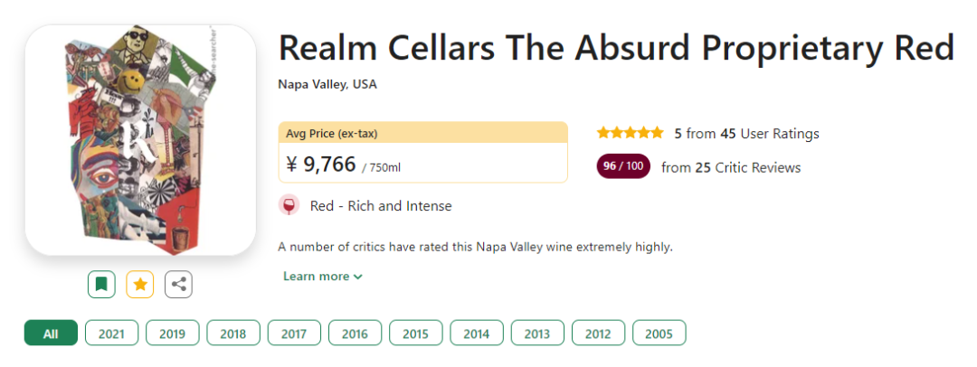 其中,酒庄的旗舰酒款——瑞梦酒庄荒诞混酿红葡萄酒(Reaml Cellars The Absurd Proprietary Blend, Napa Valley, USA)只在部分年份酿造,2005年开始每年的年产在1200-5000瓶不等,这也是醉斑马首次拿到无厘头的配额!这款酒曾连续斩获了2012、2013、2014、2015、2016、2018,共6个满分!