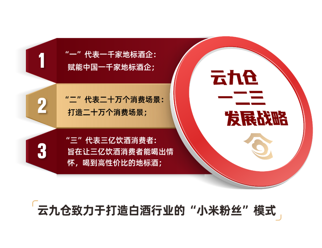 践行“品好酒,就用云九仓”的使命,坚持“一二三”企业发展战略,用全新的“小米粉丝”模式来颠覆传统白酒的营销方式。