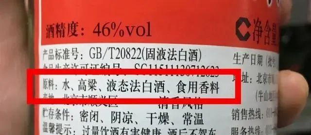 2013年,国家对原料清单进行了严格的规定,在酿酒或加工的过程中,加入的水和食用酒精都应在配料表上严格标注。