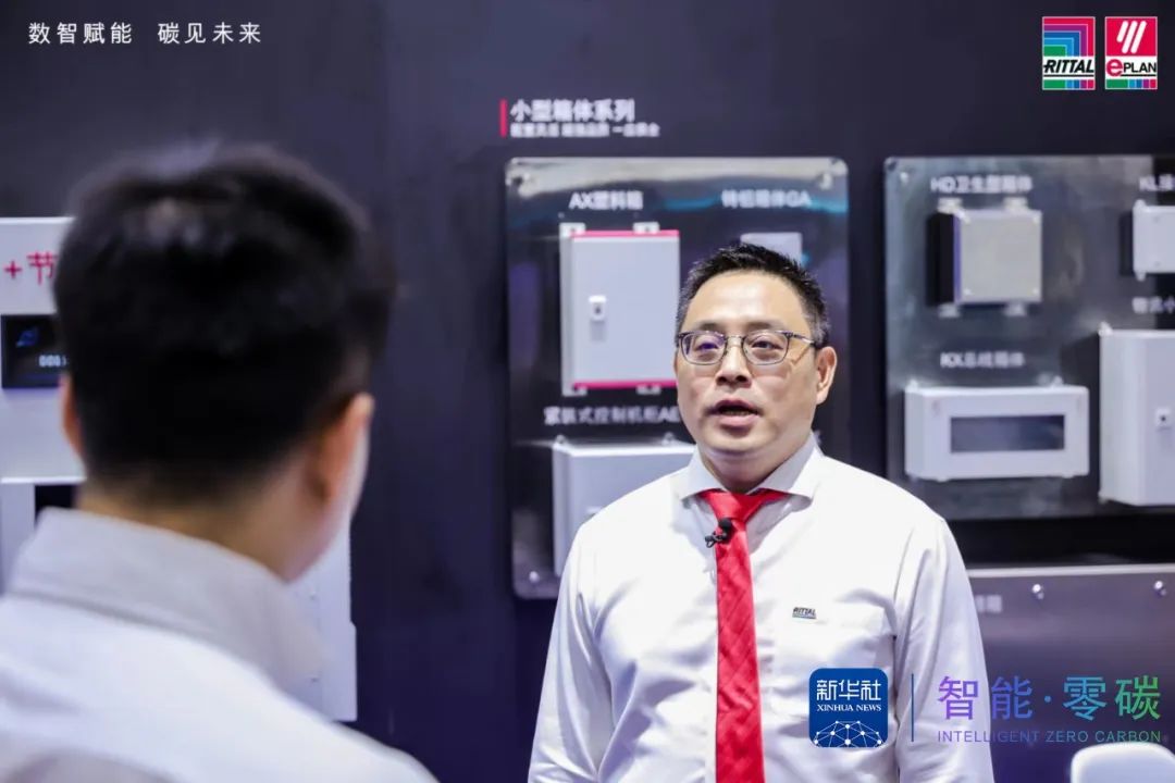 作为工博会的老朋友,威图在展会现场接受了来自新华社的专题采访,就此次展会带来的创新产品以及重点行业解决方案进行全面的介绍,阐述了在面对绿色化、数字化转型的浪潮下,威图致力于为客户提供完整的“软件+硬件+服务"的数字化创新解决方案,助力客户在提高生产效率、降低运营成本、践行低碳责任以及在综合的生态平衡等方面皆可受益的理念。