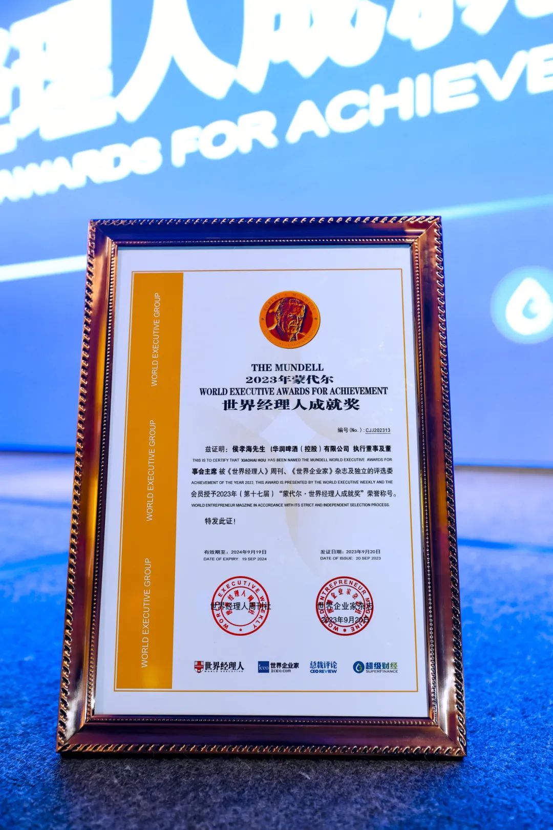 2023年,是后疫情时代经济重启的元年,经济运行中的风险和不确定性,使得中国酒业迎来多重机遇和挑战。作为此届“蒙代尔·世界经理人成就奖”获奖者,侯孝海带领团队锐意改革、积极进取、长远布局,为全面促进企业稳健发展充分发挥企业家精神,指引着华润啤酒走好传承和创新之路,在新时代、新形势下阔步前行。