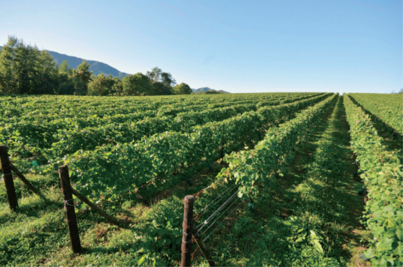 位于东部的金刚山地,由排水和通风良好的沙壤土及花岗岩形成,坡度平缓,这使葡萄栽培中非常重要的“良好的排水”和“日照时间”得到了充分保证。