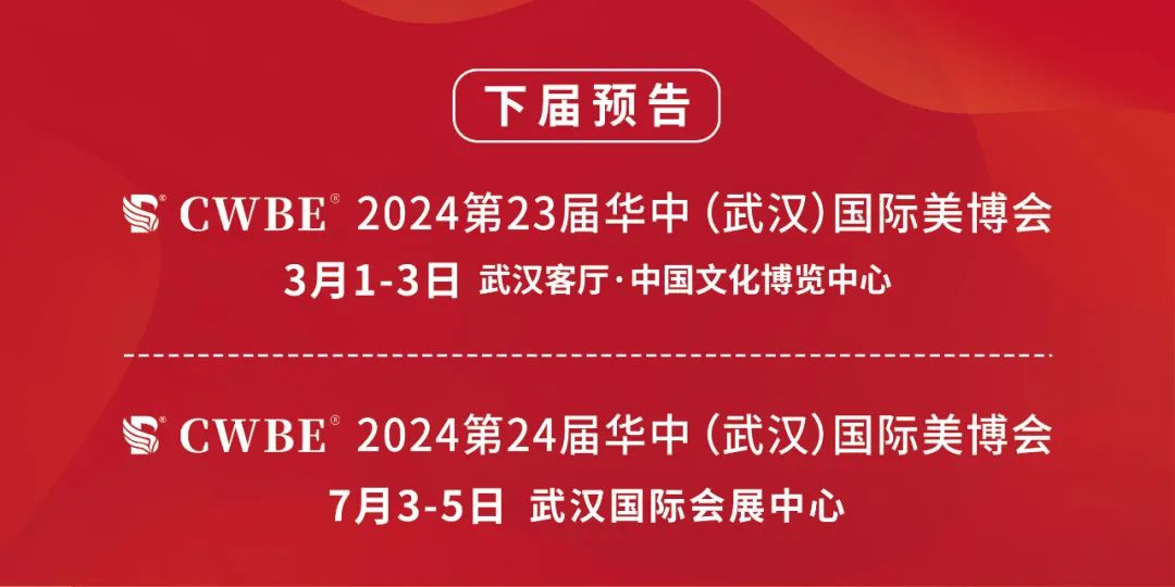至此,2023第22届武汉国际美博会圆满收官!未来,武汉国际美博会将持续深耕美业渠道,聚合美业优质资源,倾力打造一站式选品平台,提供全方位、深层次、精准的贸易展示和交流机会。