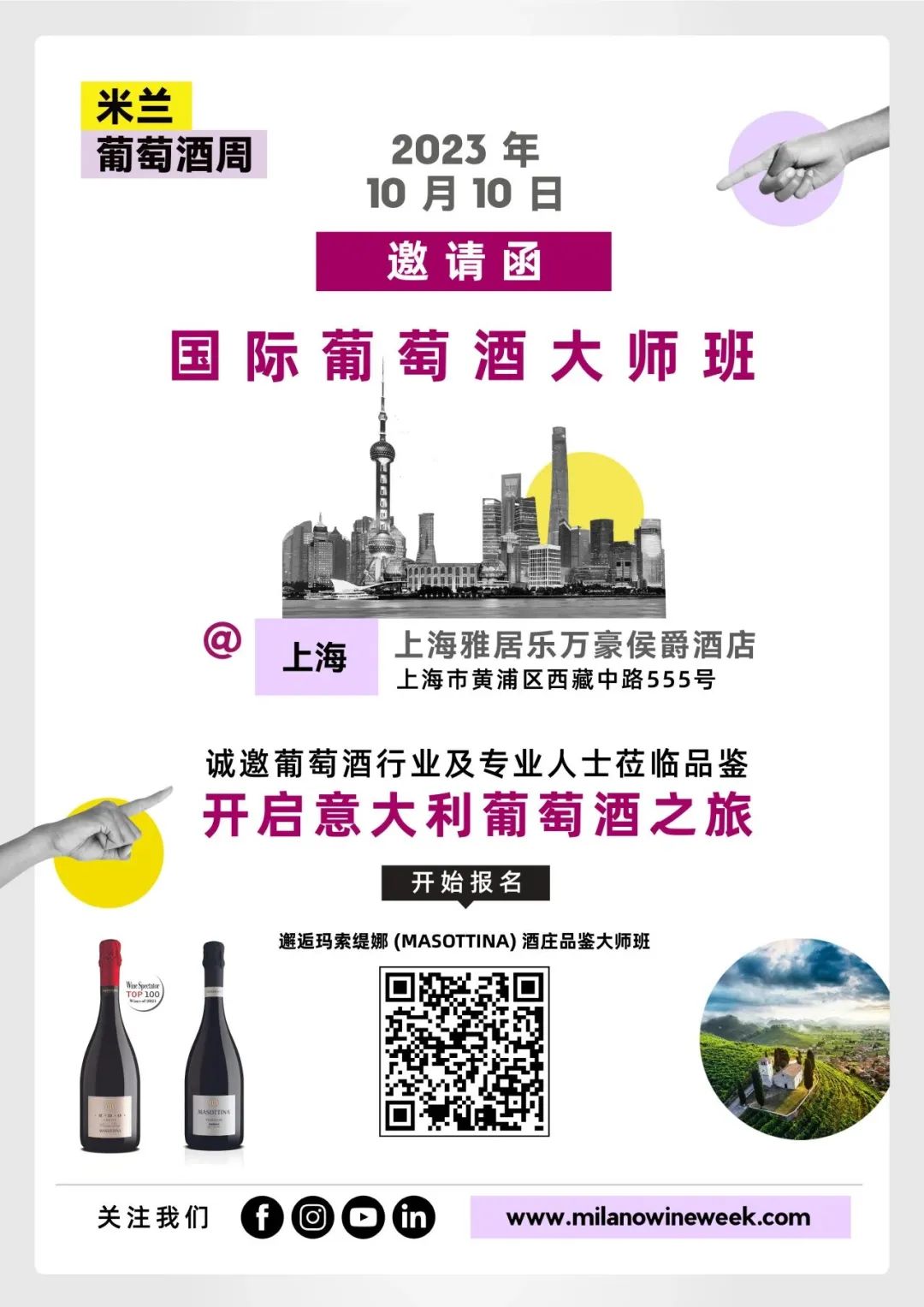 2023年金秋10月,意大利米兰葡萄酒周(MWW)将为大家带来2023年中国大陆会场系列大师班。