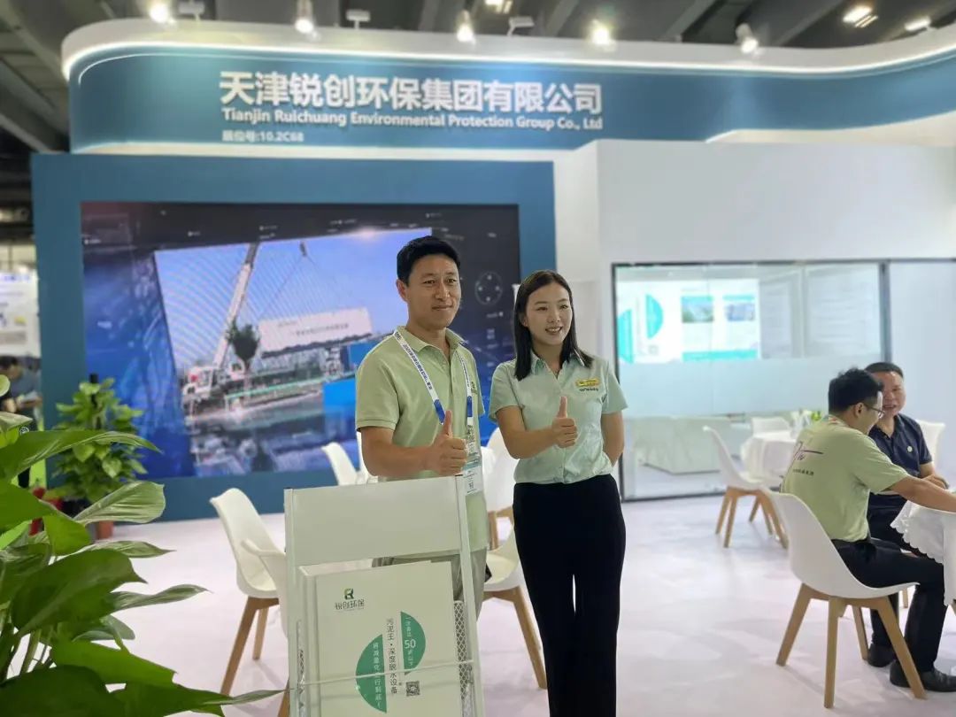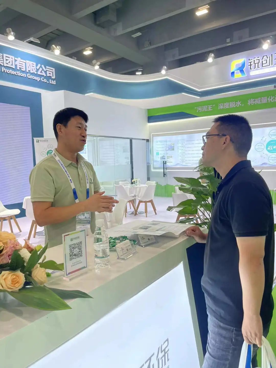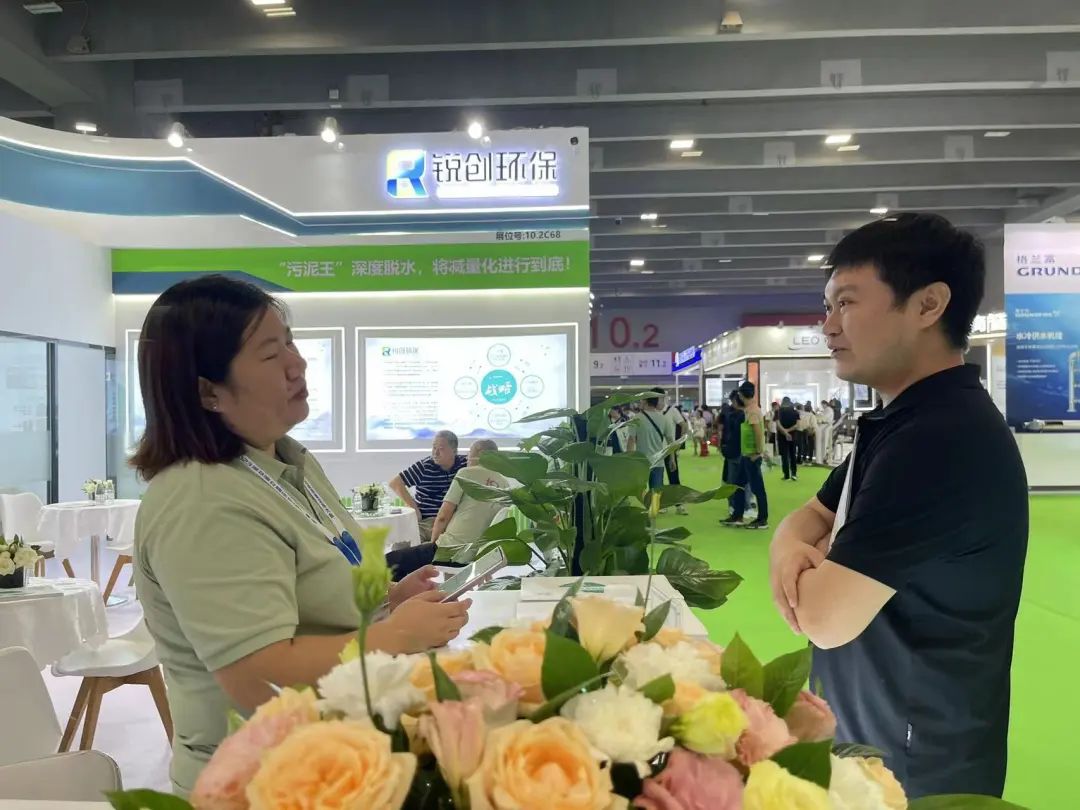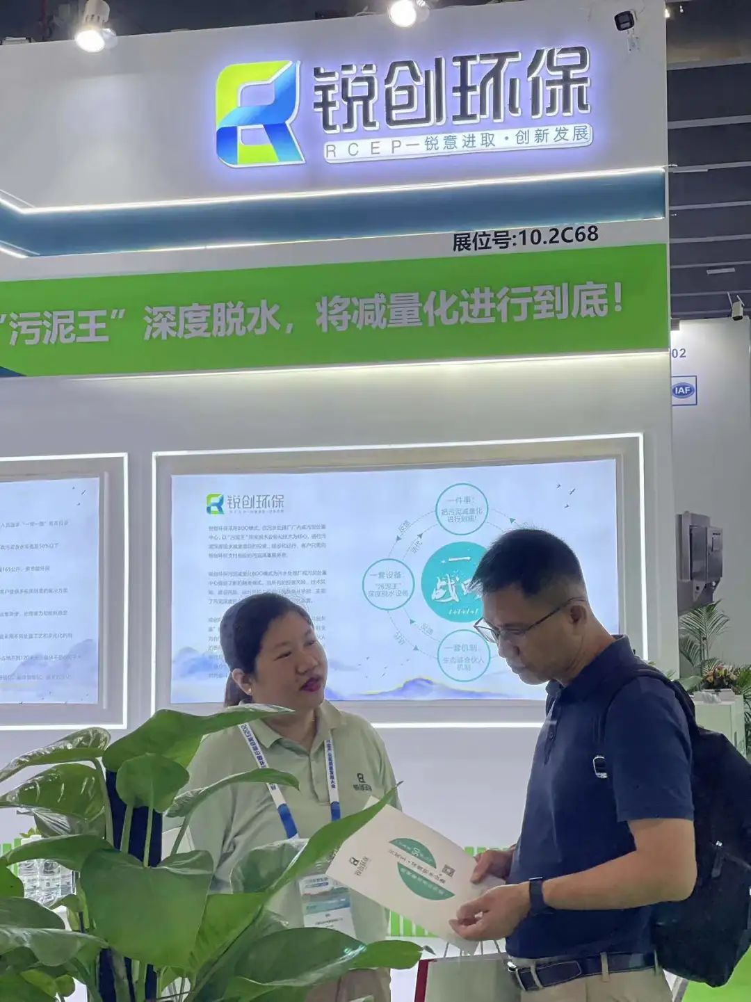 锐创环保携带最新迭代的自主研发设备“污泥王”深度脱水设备亮相此次展会!新一代设备在创新设计、不增干基、低碳节能、适用广泛、安全稳定、多元利用、省时省地、远程管控八个方面不断迭代提升,一经亮相引来行业关注,得到专家及同行的高度认可。