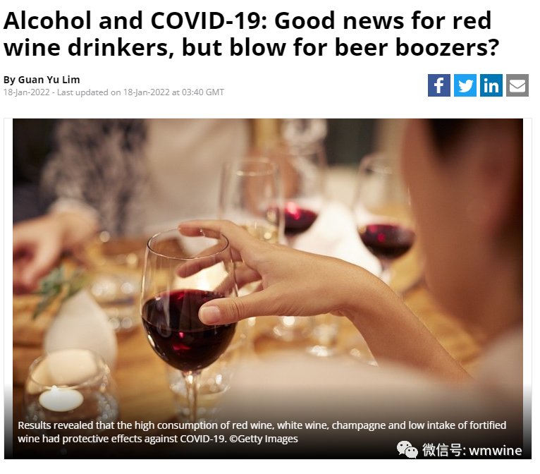 “我们的研究表明,按照指南饮用红葡萄酒、白葡萄酒和香槟,有时每周多饮用1-2杯葡萄酒的人群,似乎有机会降低感染新冠病毒的风险。但无论饮酒量和频率如何,都不建议饮用啤酒和苹果酒,因为啤酒和苹果酒会增加感染新冠病毒的风险。此外,所有的酒精饮料都不建议大量饮用。”