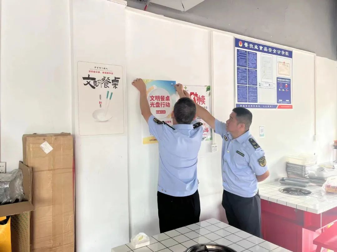 专项行动重点对县主城区鹤鸣路、滨江大道沿线餐饮店进行食品安全监督检查,现场查看餐饮单位证照证件、环境卫生、索证索票、食品存储、“三防”设施等,免费发放、张贴“公勺公筷、反对浪费、珍惜粮食”相关宣传海报,同时督促餐饮门店配备清晰的节约用餐标识,做到“店堂内有宣传标志、餐桌上有提示标识、菜单上有温馨提醒”,推动形成文明健康的用餐习惯,努力打造和创建文明餐饮示范街。