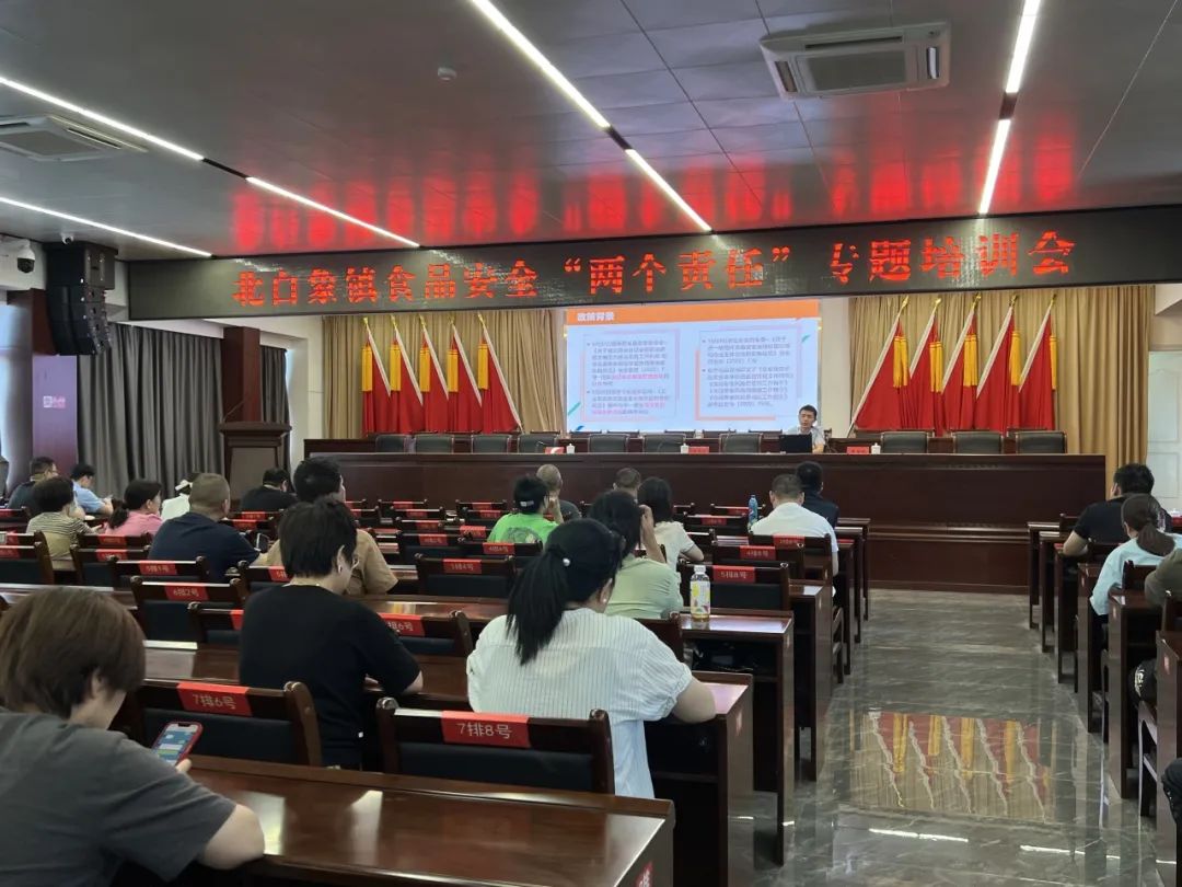 为进一步提升北白象镇餐饮行业食品安全管理水平和应急处置能力,促进餐饮行业长效、有序发展,保障全镇人民“舌尖上的安全”,9月20日,北白象镇食安办联合北白象市场监管所组织开展全镇餐饮行业食品安全“两个责任”与应急处理事件培训会。全镇各企校事业单位食堂、餐饮经营主体等97家单位有关负责人参加会议。