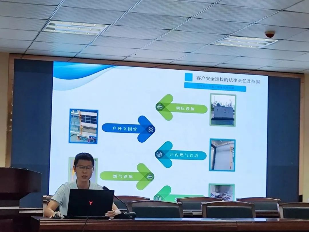 会议现场,老师通过展示,围绕微网格员日常安全巡检的范围及法律责任、餐饮场所燃气相关设备设施布局及使用规范等方面为重点向参加培训的代表上了一堂生动的燃气安全课。课程中选取近几年户内安全燃气事故案例,重点讲解了作为燃气安全排查的主力——微网格员在日常的燃气安全检查中需要重点关注的问题,告知从业者如何发现问题及整改措施。