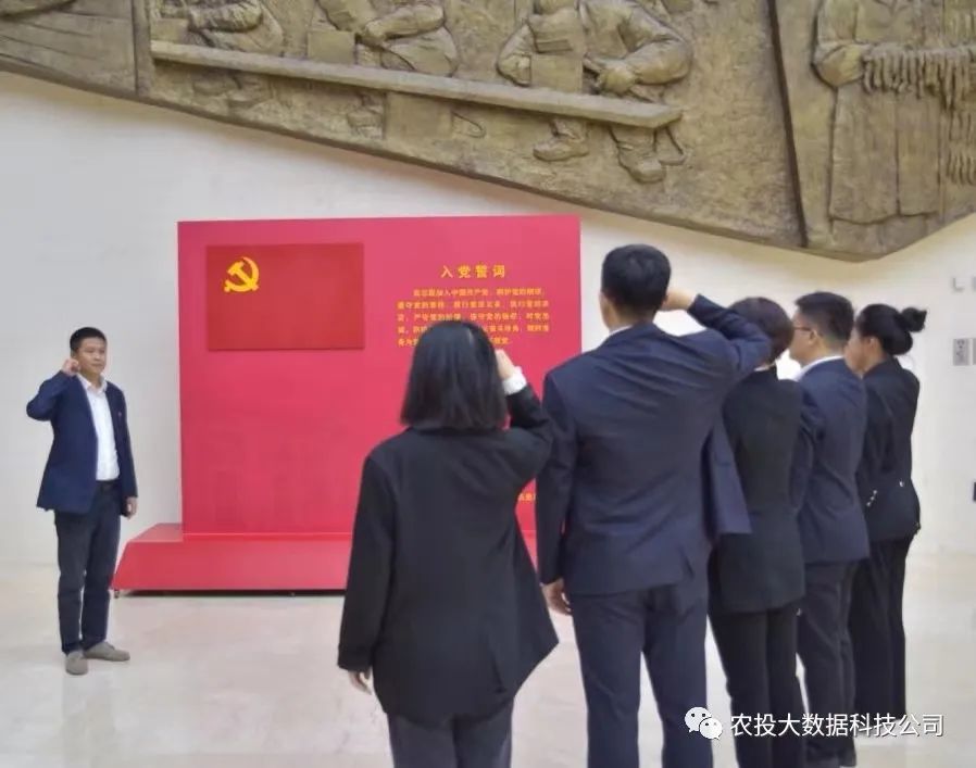 随后,全体党员驻足观看由各条战线工人代表组成的英姿飒爽的群体形象,了解到浮雕内容代表着哈尔滨市的百万职工,深切体会“劳模精神、劳动精神、工匠精神”的深刻内涵。参观结束后,农投大数据党支部负责人带领全体党员共同面向鲜红的党旗庄严宣誓,用铮铮誓言表达了共产党员矢志不渝的理想信念和无比坚定的永恒初心。