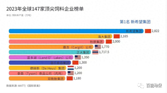 “新希望”集团2023年更是跃居世界第一的饲料生产企业,“海大”、“双胞胎”、“正大投资”、“唐人神”、“大北农”,“傲农”分别位居世界第2、10、11、23、27、35位!这7家企业加起来的饲料产量22年便是达到了8700万吨,而22年全国猪饲料产量也就是在1.3亿吨!
