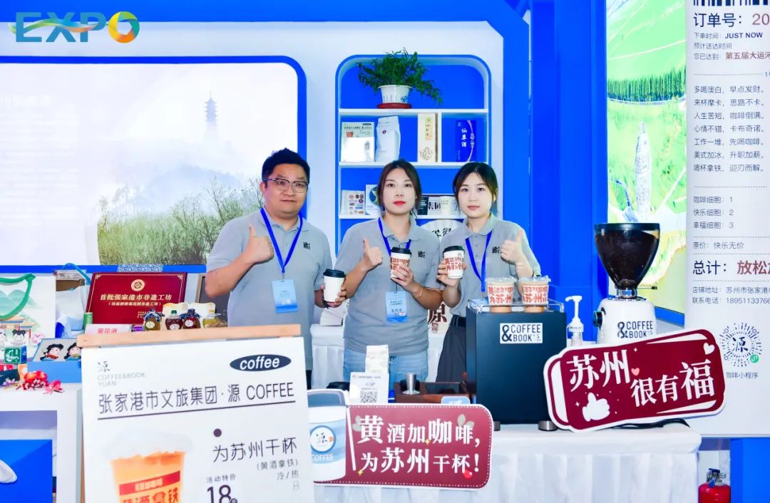 展会现场,源咖啡的三款活动限定饮品“为苏州干杯”黄酒拿铁、“苏州很有福”经典拿铁、“源”来你很美(美式)受到市民游客的一致好评,为市民游客带来了一场港城本土的创意滋味体验。