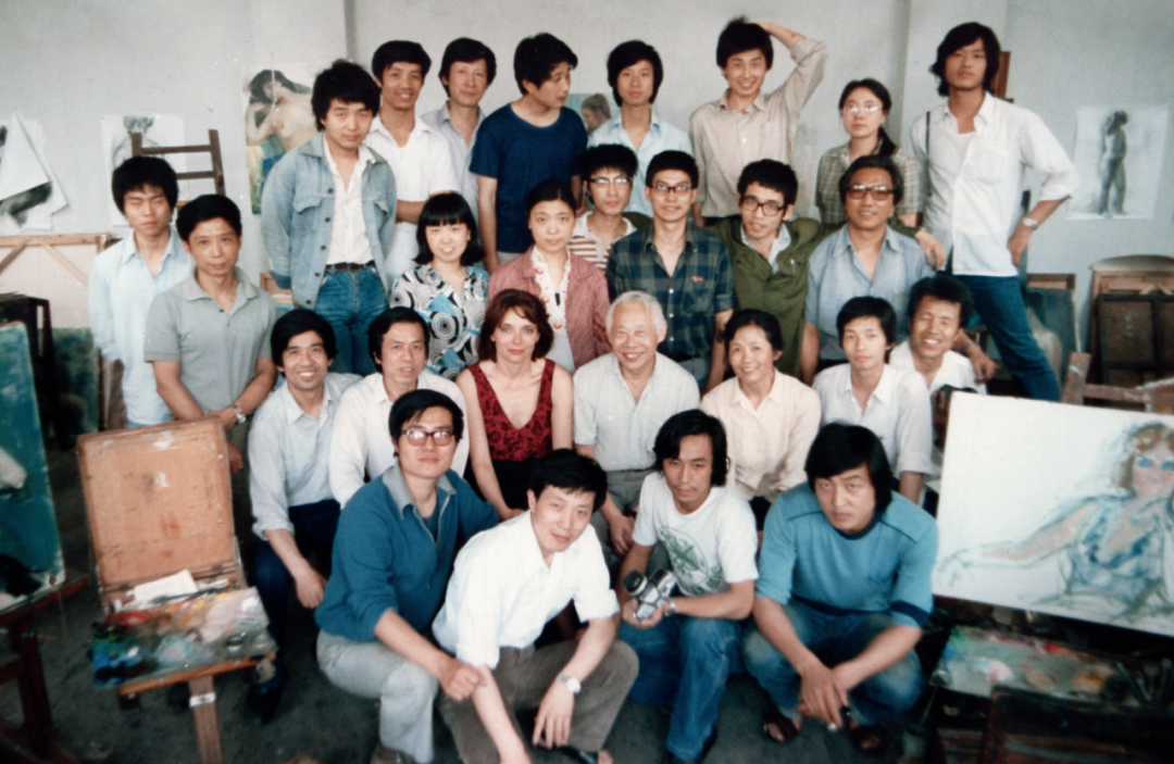 1983年,赵无极与浙江美术学院(现中国美术学院)师生合影,中国美术学院美术馆藏,赵无宣捐赠