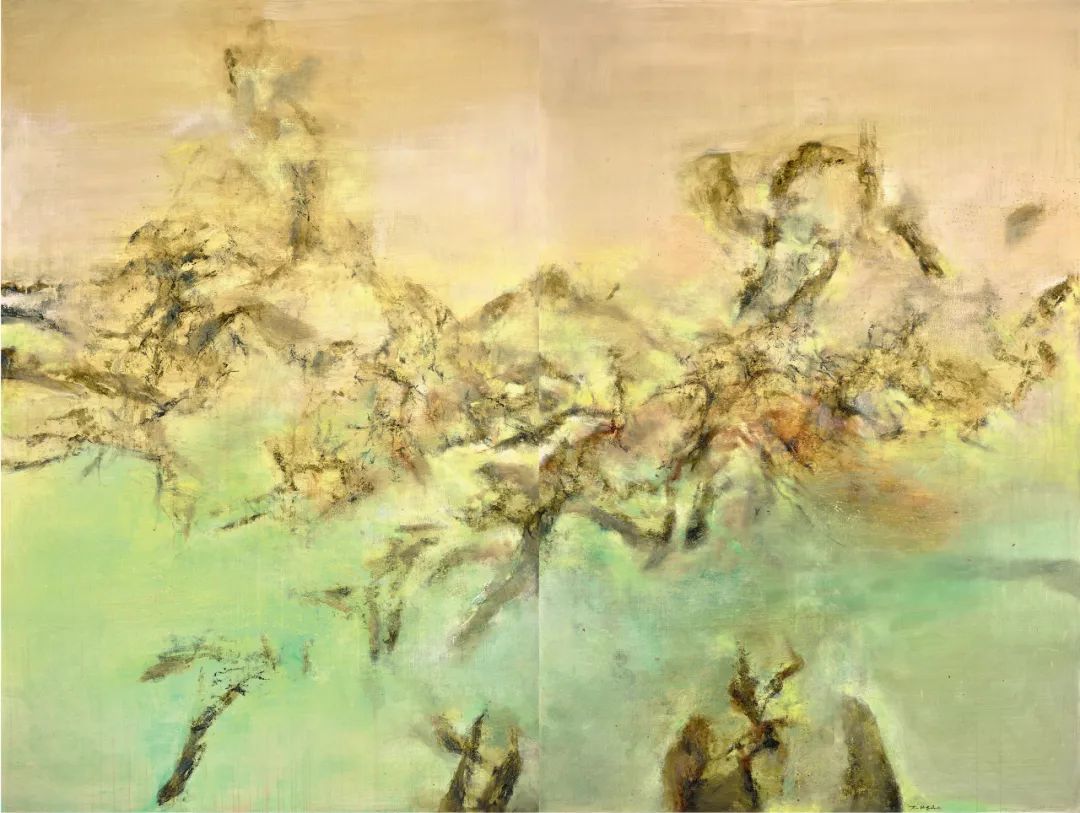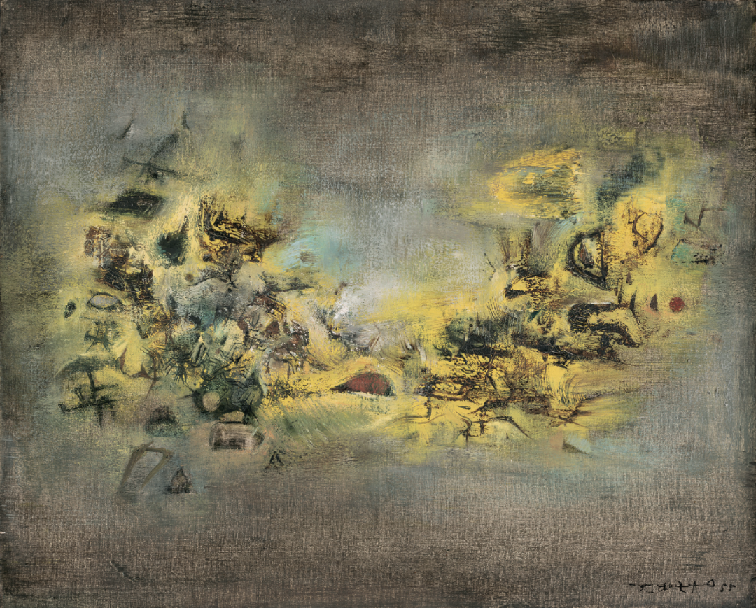 1948年,他赴法深造。初到巴黎,他的画作仍是对生命记忆的表达。1951年,他在瑞士见到保罗·克利的原作,顿悟中华优秀传统文化的创造性转化的潜能。他以甲骨文、青铜器铭文为灵感,用想象的书符创造形体,营造空间。