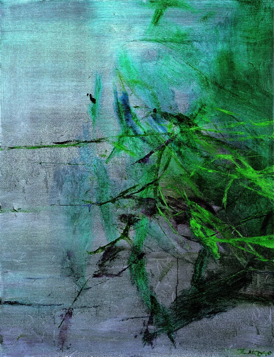 在水墨滋润的物象生发中,在油彩流动的呼吸节奏中,他的绘画融入了一份东方意蕴。在愈发自由的创作中,西方与东方、力量与静观紧密融合。