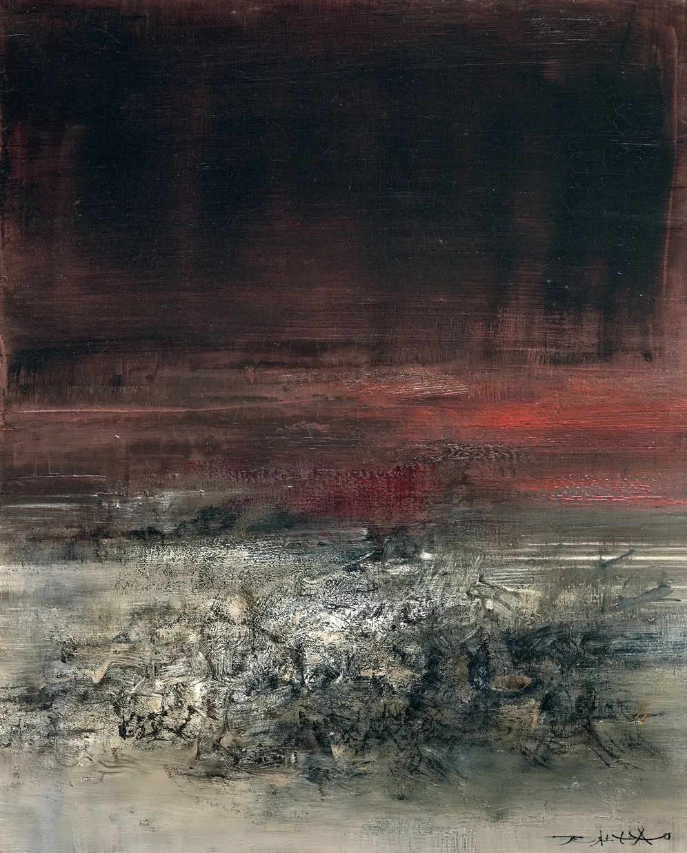 1957年,赵无极在美国旅行时,结识了纽曼、罗斯科等抽象派画家。抽象表现主义扩展了他的绘画视界。1958年起,他不再为作品命名,而是以作品完成的日期命名。