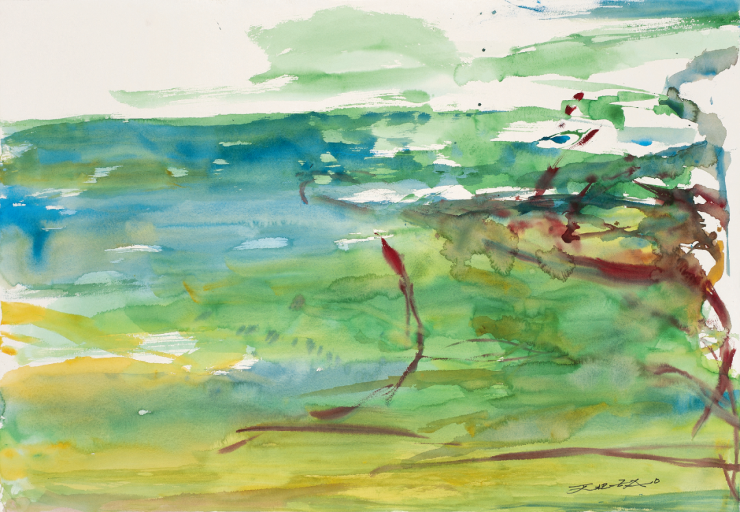 赵无极的水彩画与油画创作互为印证。2007年4月9日,赵无极用水彩颜料重拾写生创作。山海花木在律动的笔触中幻化氤氲,水彩画成为他最后的绘画幸福。