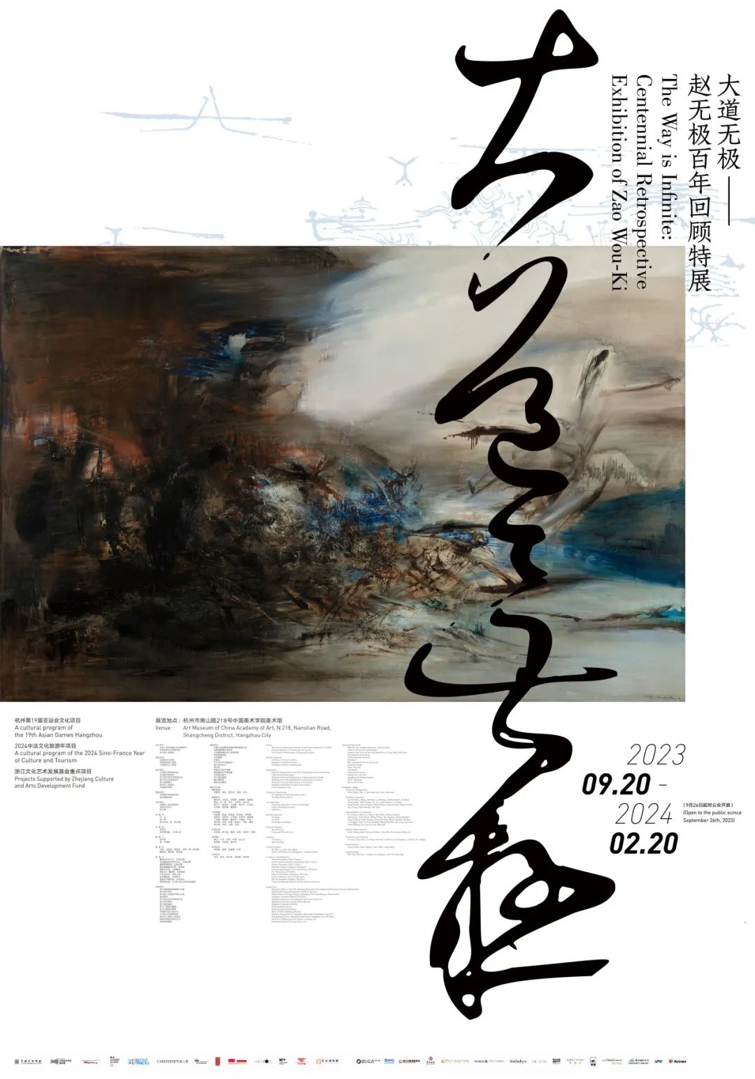 2023年9月19日,作为杭州第19届亚运会重要文化项目、2024中法文化旅游年项目、浙江省文化艺术发展基金重点项目,由中国美术学院美术馆与赵无极基金会联合策划的“大道无极——赵无极百年回顾特展”,在中国美术学院美术馆正式启幕。本次特展于9月26日起正式对公众开放,将持续展至 2024 年2月20日。