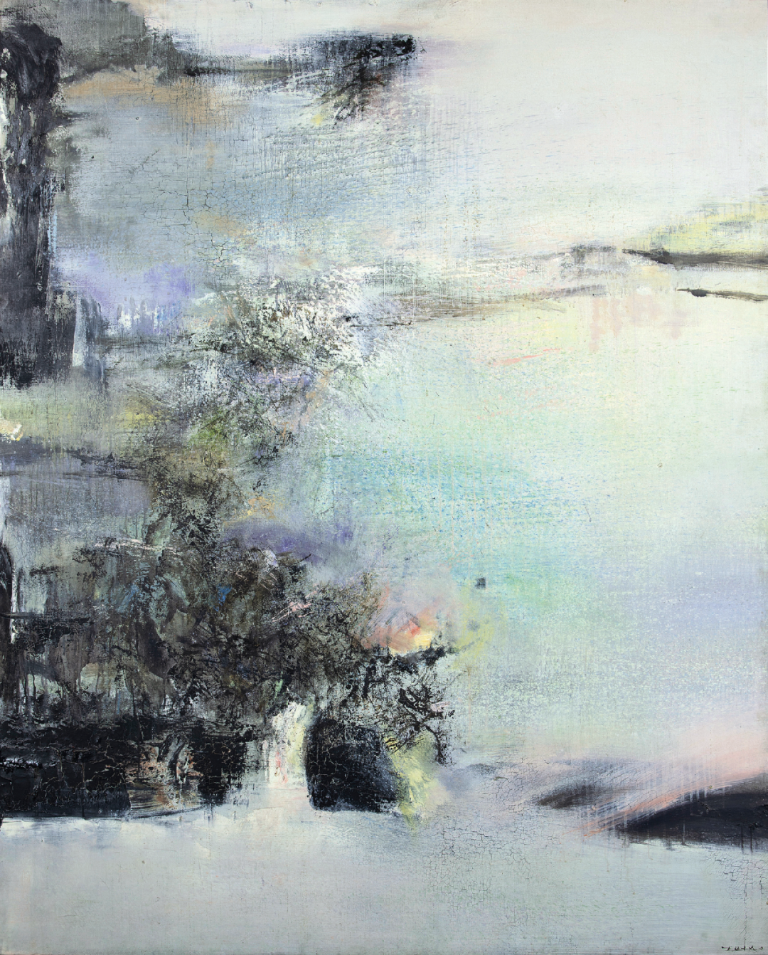 2000年以来,赵无极的绘画与自然的联系愈发密切,重启带有形象含义的画作题目。《向我的朋友亨利·米修致敬》展现了光华初现、万物生长的意蕴。从抽象到山水气象,再回到写生,在“绘画的幸福”中,他晚年的作品氤氲化醇、生机无限。
