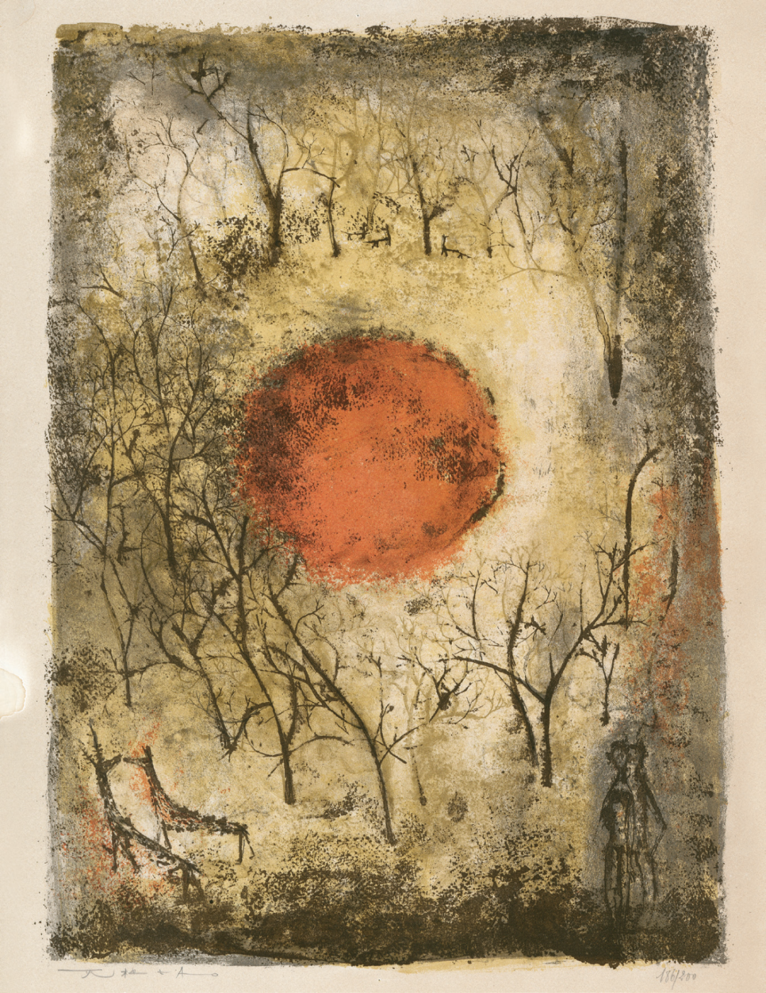 红太阳 石版画 1950 48x34cm