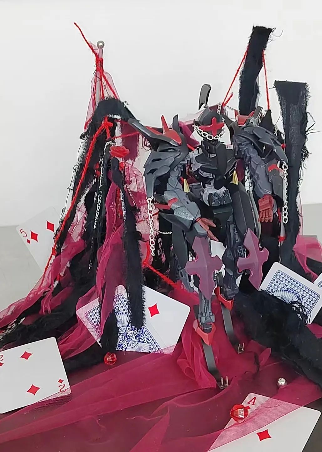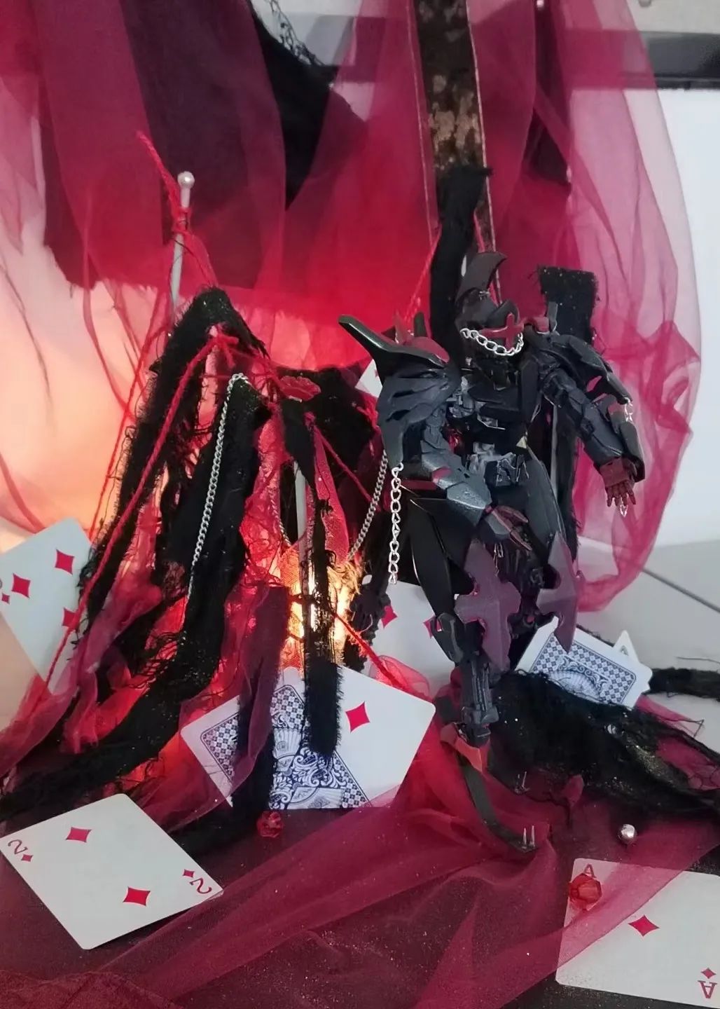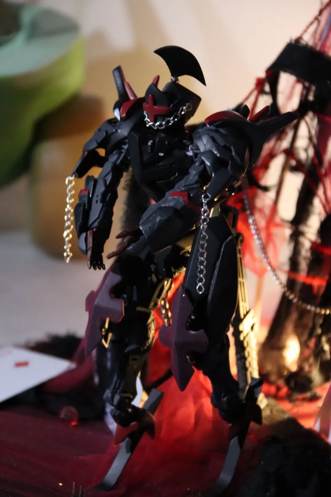 设计说明:在遥远的中世纪世界,沉睡在神秘的黑暗哥特王国中,存在着一个被遗忘的传奇。在一片荒凉的石窟之中,住着一位神秘的工匠,他研究古老的秘术和失传的艺术,深谙自然与神秘之力的融合,他缔造了一系列黑暗哥特机械的奇迹。其中最惊艳的,莫过于名为"高高冷达"的高达。它身披坚固的黑铁铠甲,衣着诡谲的紫色斗篷,仿佛夜幕中的黑暗使者。传说它拥有着古老文明的智慧,能与自然的力量相互呼应,驾驭雷电和黑暗,守护着星辰的秘密。然而,"高高冷达"逐渐消失在岁月的长河中,成为了神秘的传说,等待着有缘人再次唤醒它传奇的命运。