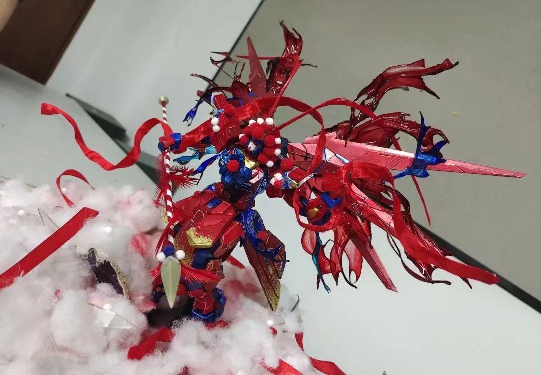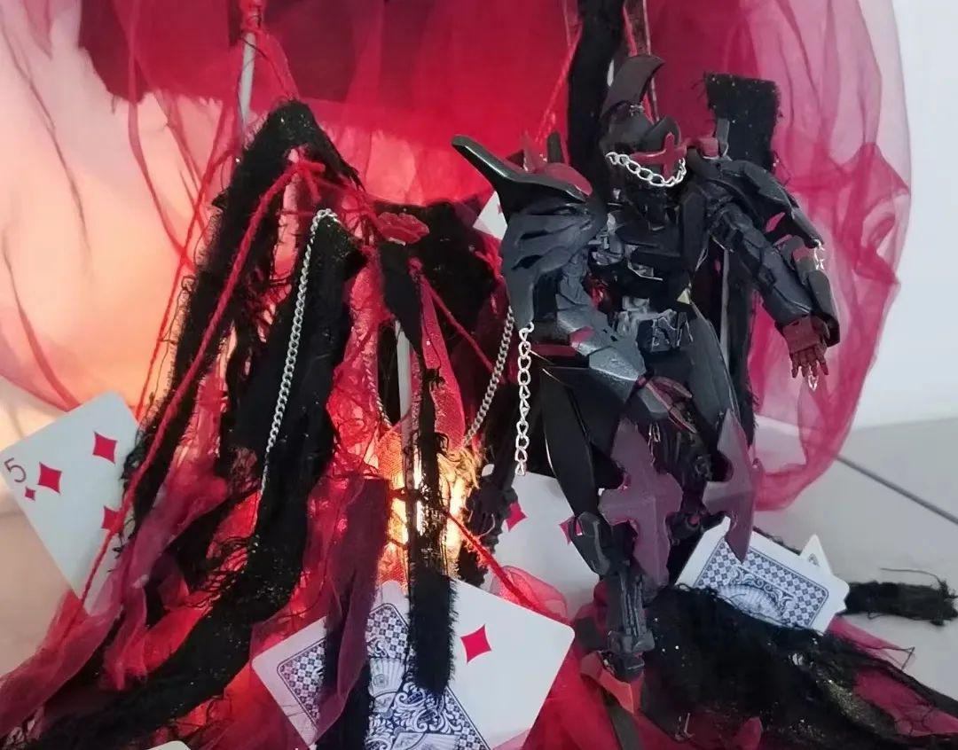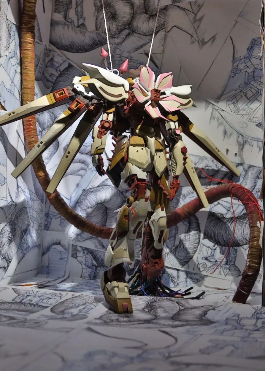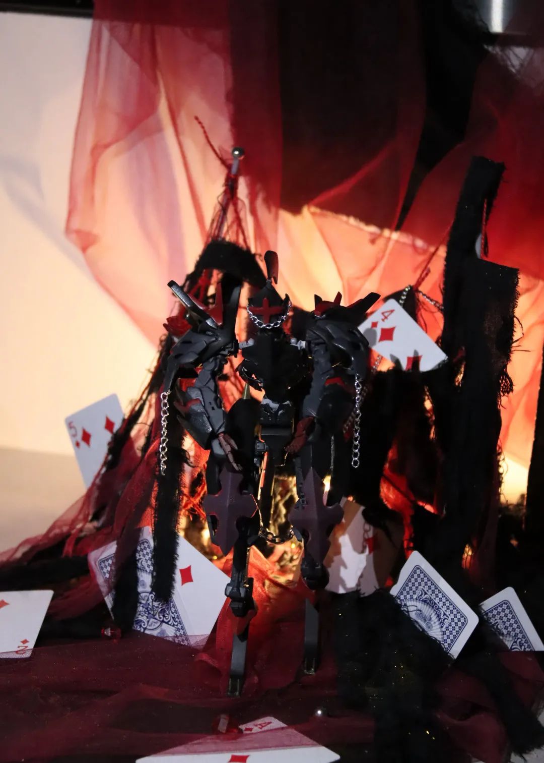 设计说明:在遥远的中世纪世界,沉睡在神秘的黑暗哥特王国中,存在着一个被遗忘的传奇。在一片荒凉的石窟之中,住着一位神秘的工匠,他研究古老的秘术和失传的艺术,深谙自然与神秘之力的融合,他缔造了一系列黑暗哥特机械的奇迹。其中最惊艳的,莫过于名为"高高冷达"的高达。它身披坚固的黑铁铠甲,衣着诡谲的紫色斗篷,仿佛夜幕中的黑暗使者。传说它拥有着古老文明的智慧,能与自然的力量相互呼应,驾驭雷电和黑暗,守护着星辰的秘密。然而,"高高冷达"逐渐消失在岁月的长河中,成为了神秘的传说,等待着有缘人再次唤醒它传奇的命运。
