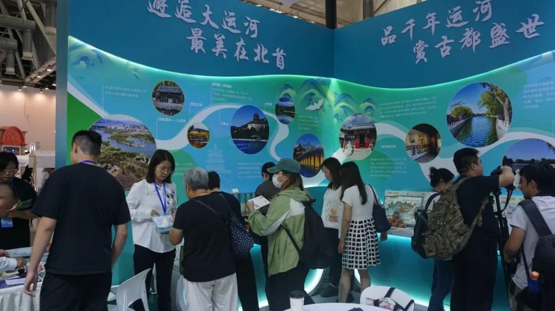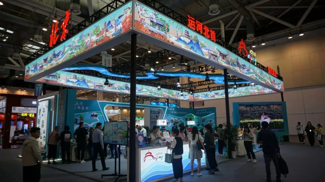 本届运博会上,北京展台以“运河北首 魅力北京”为主题,以《北京市大运河文化保护传承利用实施规划》为依据,聚焦演艺新空间、非遗新体验、时尚新玩法、特色新文创等四个板块,运用原创剧《大运河传奇》皮影戏演绎壮美运河的千年神韵;以运河丝绸、火绘葫芦等非遗项目再现千年运河的精神传承;数字赋能文旅,手机扫码关注,即刻呈现大运河北京段源头遗址公园、颐和园、通州大运河文化旅游景区等实时场景,让观众在互动式、沉浸式体验中,感受旅游运河的新玩法;现场赠送和发售专门量身打造的“大运河礼物”,让观众切身感受古老运河的文化价值。