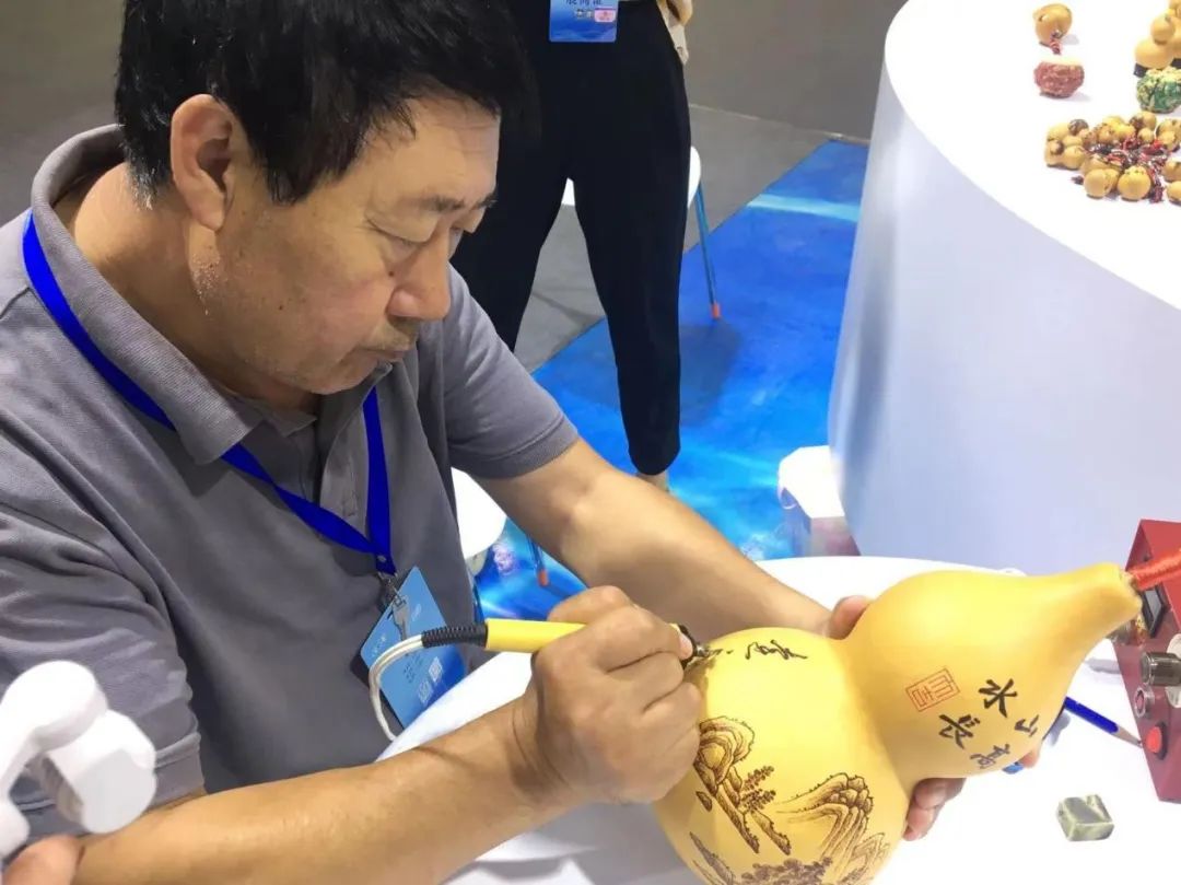 市级非遗“老北京火绘葫芦”代表性传承人牛成果,在现场和观众一起,利用国画技法在葫芦上烫画,现场教观众体验火绘葫芦,观众通过“作画”体验,感受着中华传统文化的无穷魅力。