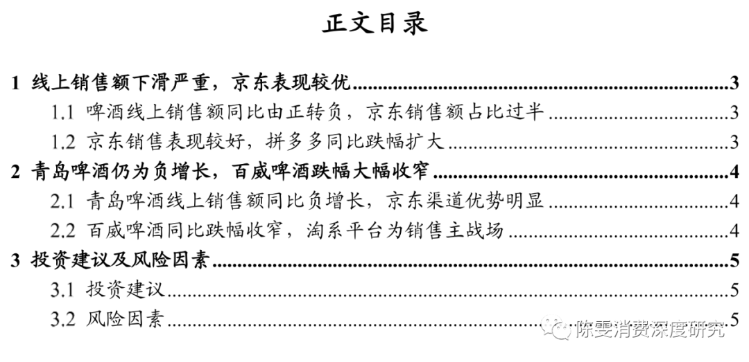 2.1 青岛啤酒线上销售额同比负增长,京东渠道优势明显