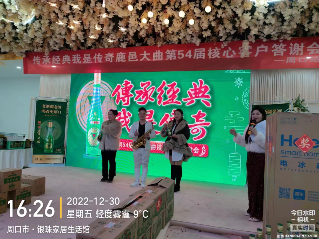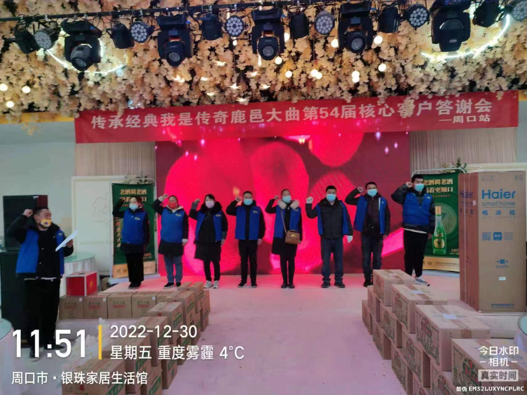 每逢岁末年底,召开客户答谢会是相聚,亦是感恩;是总结,亦是鼓劲。在答谢会上,宋河酒业鹿邑大曲团队当地负责人代表宋河酒业,对广大新老客户的支持和厚爱表示衷心感谢。据了解,作为宋河酒业的大本营市场,2022年,周口市场继续聚焦市场基建,重视消费者体验,不但巩固了品牌龙头地位,更是实施营销改革,抓基础、抓规范,圆满完成了年度目标任务。作为鹿邑大曲产品周口地区的总代理商,乐乐副食的刘总表示,多年来,宋河酒业用精细化营销实现了厂商之间的同频共振,用更精准的市场规划为合作伙伴提供及时的扶持和帮助,2023年,厂商齐心协力,定能开创新局,再创佳绩!同时,作为客户代表,终端商闻老板更是现身说法讲述自己与鹿邑大曲的渊源,提倡大家多支持家乡企业,爱周口就卖鹿邑大曲。以匠心酿美酒,以信心铸品牌。在周口市鹿邑大曲业务团队展示及感恩环节,伴着三拜客户隆重礼节的三国演义主题曲《这一拜》响起时,掌声更是经久不息……
