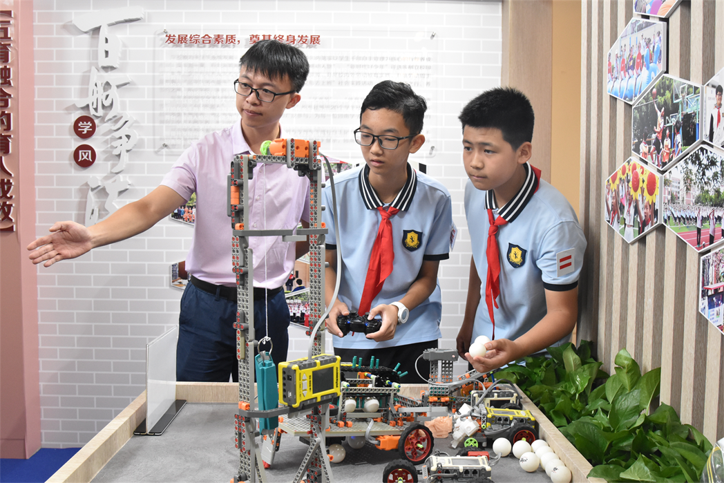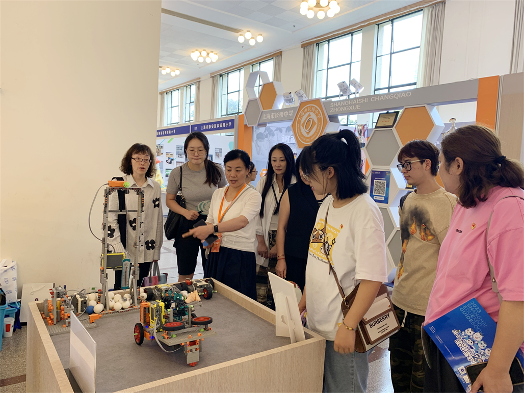 本届教博会的主题为“共创一流城市教育,共筑教育强国梦想”。学校近年来积极落实党的二十大精神,以“躬耕教坛,强国有我”为宗旨,努力实现育人方式的变革。学校展区不仅通过展板、宣传片等形式介绍学校课程实施及特色、场馆设施等基本情况,让观众们全面了解学校,还专设师生在跨学科主题学习中的前期成果——“智能乒乓球发射机器人打靶”展台,通过实践操作让参观者亲身体验,充分展示了学校近年来通过优化学习方式,培养学生创新思维和解决问题能力的成果。